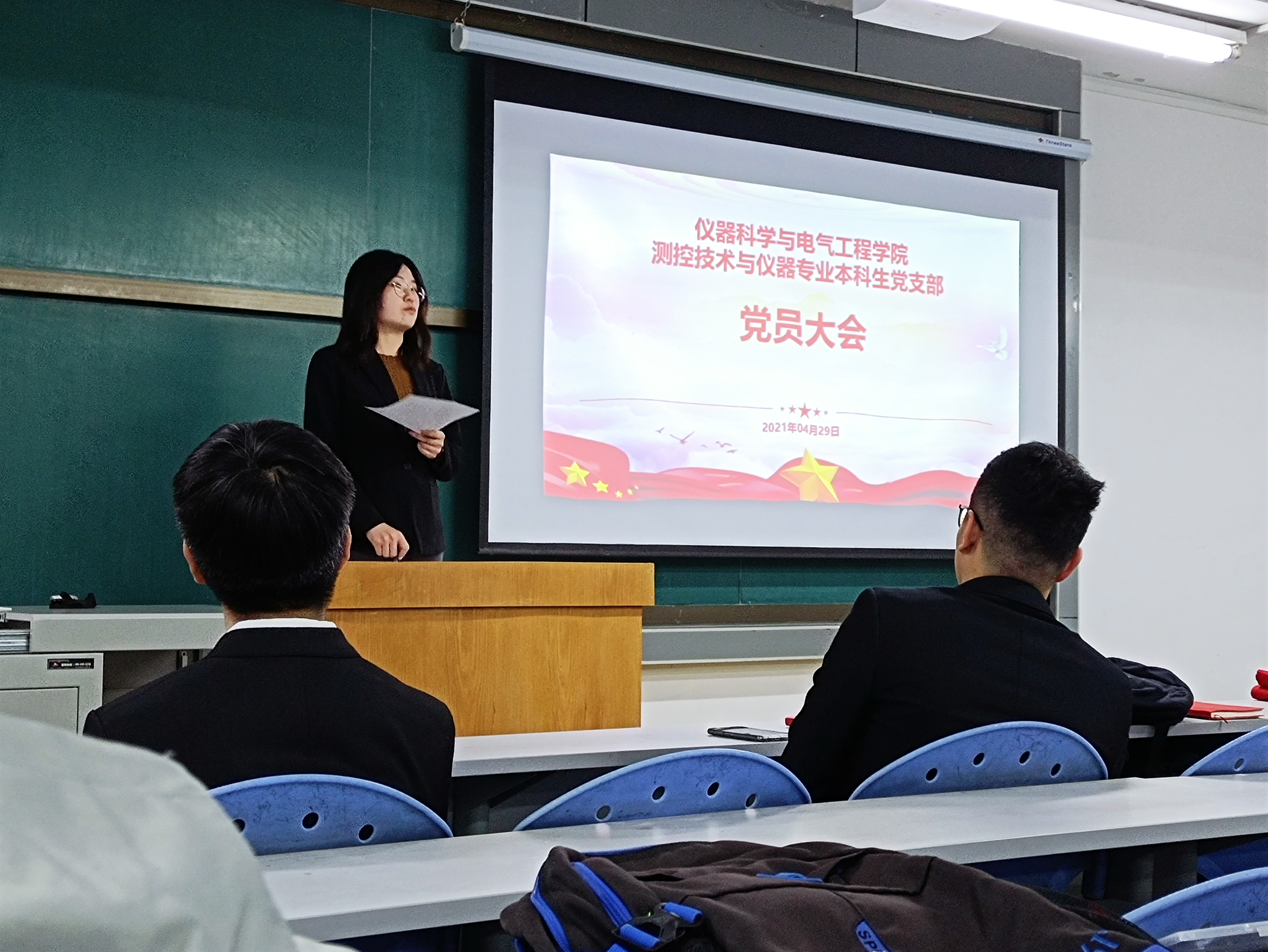 429日晚18:00,best365体育亚洲测控技术与仪器专业本科生党支部组织全体员工党员集体学习习近平总书记在清华大学考察时的重要讲话。活动由支部书记马姗姗老师主持。
