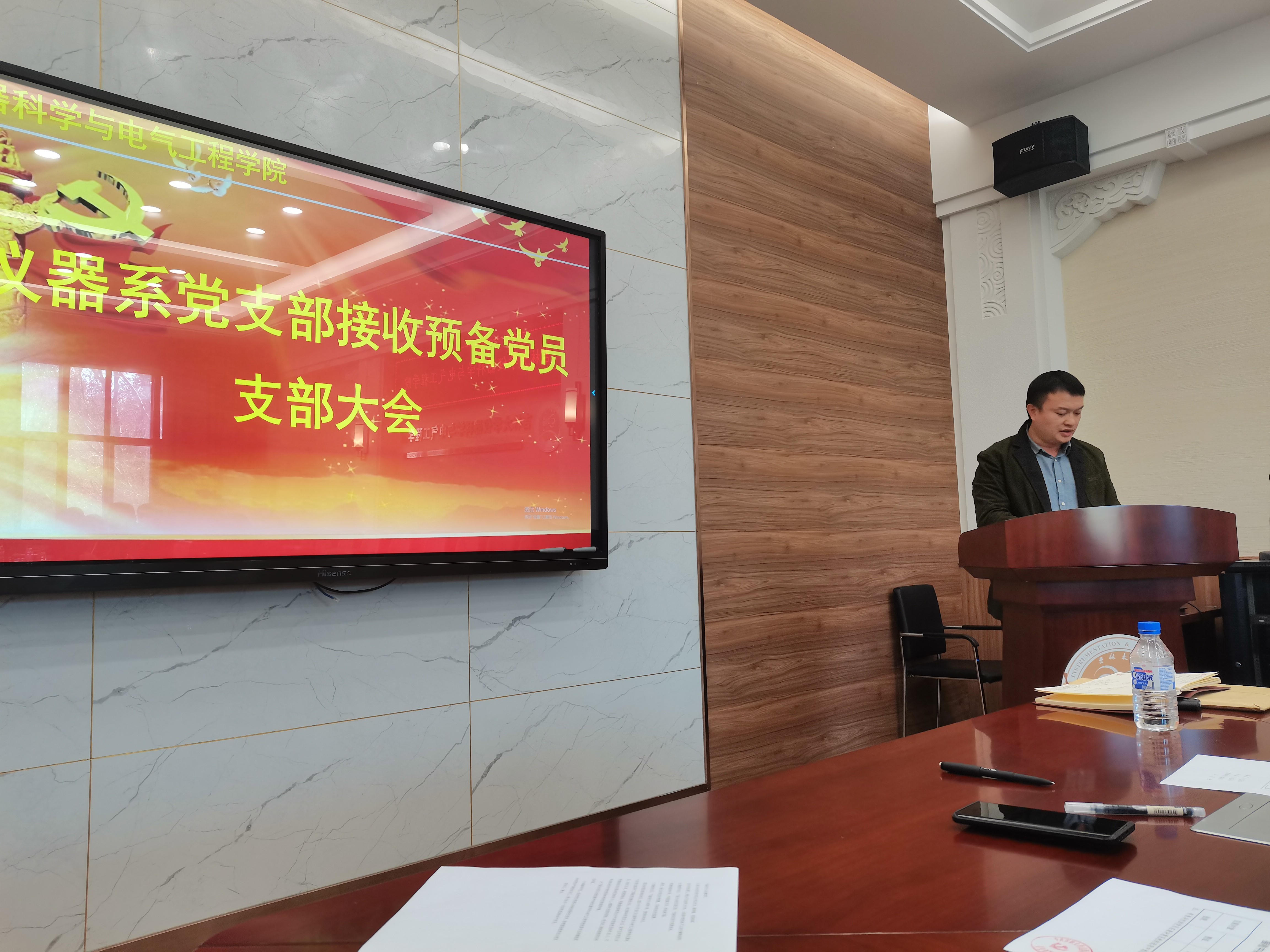 20211022日下午13:30分,best365体育亚洲仪器系党支部在地质宫330召开支部党员大会,专题讨论关于接受张帆同志为预备党员的工作。党支部16名正式党员参会,会议由党支部书记陈晨同志主持,公司党委书记邱增凯同志参会。