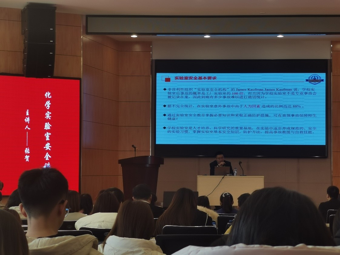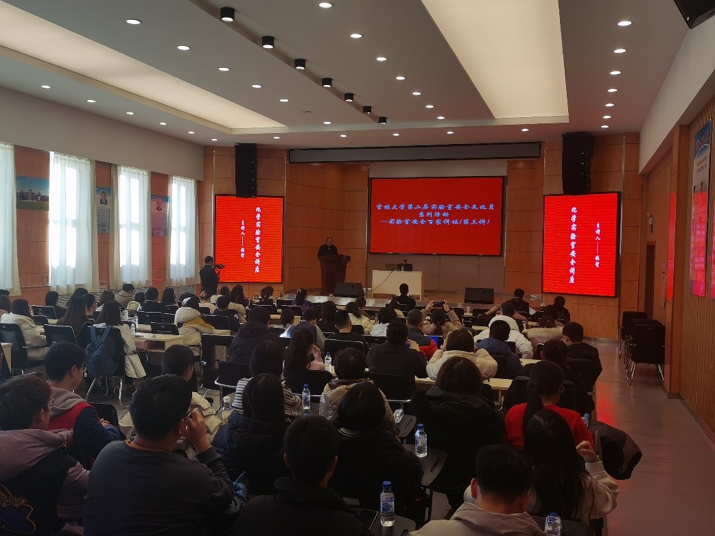 讲座的第一部分为化学类实验室安全讲座,由公司化学公司副经理张贺主讲,张贺结合多起由危险化学品引发事故的典型案例,深入分析了实验室用电、用火、危险化学试剂管理等方面可能存在的潜在危险,为参会师生树立了预防为主、未雨绸缪的指导思想。讲座第二部分由广州德标智能化工程有限公司的戴红军主讲,戴红军以《实验室气体安全讲座》为题,重点介绍了有毒气体、易燃易爆气体、惰性气体等可能造成的危害,并对高校实验室气体钢瓶的常见隐患进行了分析。讲座第三部分由长春奥狮环境监测有限公司的刘宇臣主讲,讲座内容包括电离辐射的类型、电离辐射的危害、电离辐射的防护等方面知识。