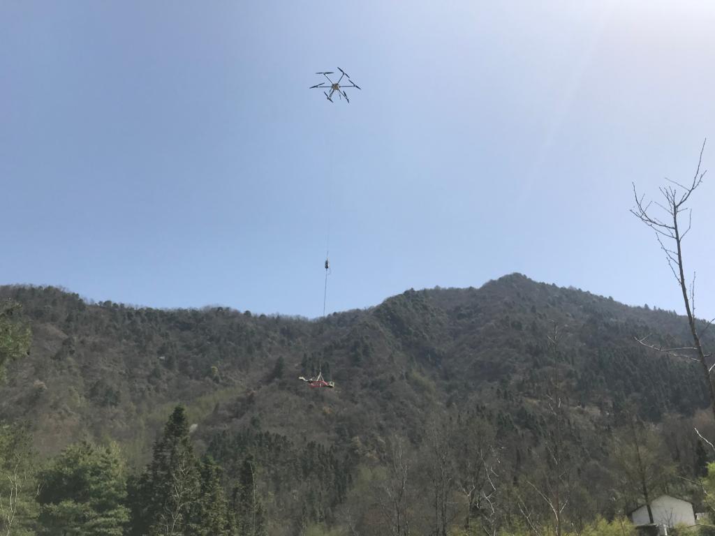 西渝高铁是国家《中长期铁路网规划》“八纵八横”高铁网络中包(银)海通道和京昆通道的重要组成部分,是陕西省西安市到重庆市的高速铁路客运专线,西渝高铁由西安经万州至重庆,设西安、安康、城口、万州、涪陵、重庆等12个站点,线路全长约538公里。沿途穿过很多山区,至今不通铁路,仅有高速公路与外界联通,十分封闭,属于国家重点扶贫区域。受中国中铁二院工程集团有限责任公司委托,公司林君院士地空电磁探测团队于生宝教授、刘长胜教授、周海根副教授、滕飞高级工程师及其研究生赴重庆市城口县,应用大载重长航时油电混合动力旋翼无人机飞行平台,搭载最新研发的三分量传感器,实现了复杂山区高效探测。此次的探测线路多涉及海拔1500m以上的高山峡谷区,地表最大高度差1200多米,植被茂密,是典型的地面方法难进区,地面大部分物探资料空缺。为了保质保量完成工作任务,团队成员每天行进在崎岖险峻的山路、躲过高空落石、攀过十里大山,风餐露宿克服重重困难,利用自主研发的地空时频电磁探地装备,实现了“难进入区”深部和盲区的地电结构勘查,探明了重庆市城口县至陕西省安康市多段隧道线路的地下结构,取得了宝贵的电磁物探资料。