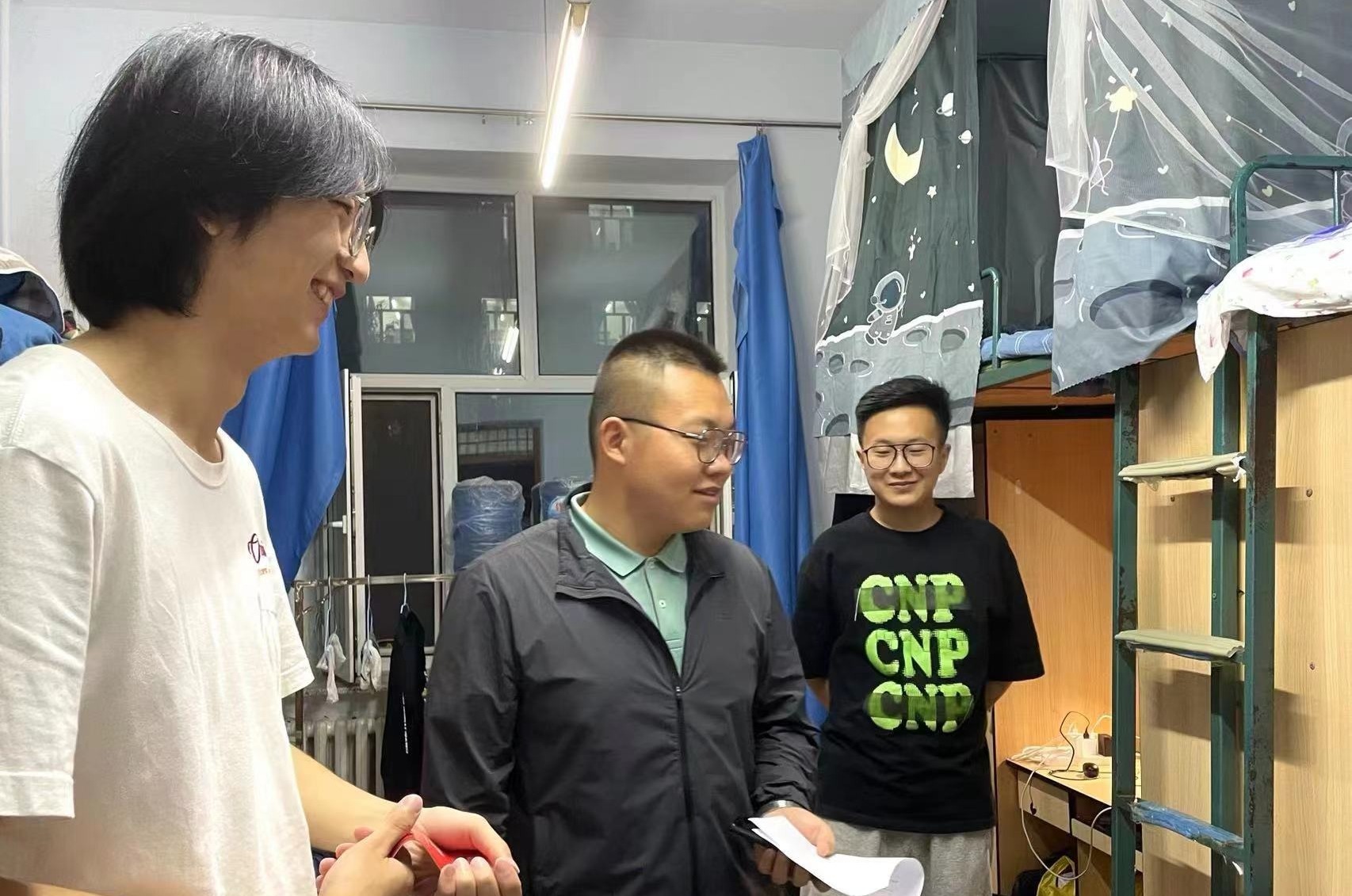 走访过程中,三位辅导员老师对寝室卫生和用电安全做了仔细检查,提醒同学们杜绝使用违规电器、保证寝室用电安全,同时强调在常态化防控期间,各位同学要做好个人防护,出入寝室、教学楼戴好口罩,定期对宿舍进行消毒通风。孙鹏博老师和包健伦老师在寝室中与员工进行亲切交谈,询问同学们在生活中遇到的问题,了解学习方面存在的困难,并向大家传达公司领导和老师对同学们的关心和鼓励。在毕业生宿舍,马姗姗老师详细询问了考研员工复习应考的进度和状态,勉励考研员工在冲刺阶段要树立充足信心,保持良好心态,劳逸结合,以积极的态度迎接考试,取得满意成绩。