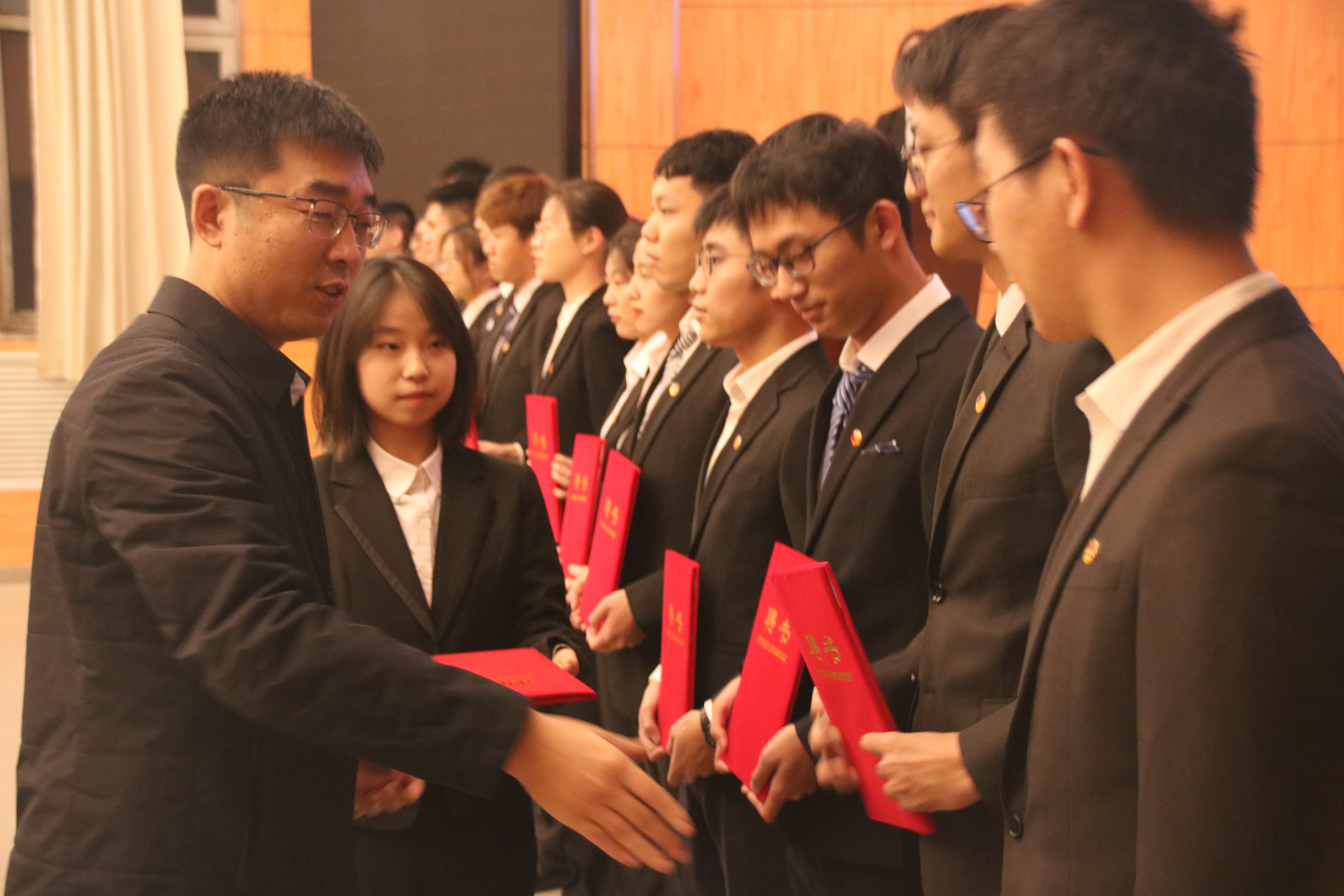 公司党委副书记兼副经理周伟老师为第十七届团学组织主要员工干部颁发了任职证书并合影留念。颁发仪式结束后,郝毅同学宣读了第十八届团学组织主要员工干部候选人名单,候选人们按照竞选次序依次上台演讲,他们分别从个人履历、工作经历、职位认知以及未来展望四个方面发表了激情澎湃的演讲,现场气氛热烈,赢得了阵阵掌声。