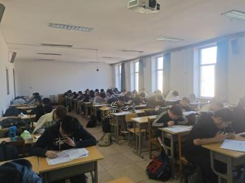 早8:30,2019级本科生辅导员马姗姗、博士兼职辅导员史博日来到模拟考场现场,向同学们解读模拟考试要求后,考试正式开始。此次模拟考试为期一天,上午8:30到11:30为数学考试,下午14:30到17:30为英语考试。此次考试力求模拟真实研究生考试环境,考试时间、试卷和答题卡样式、答题填涂规则等均严格按照研究生考试要求进行。开考后,同学们迅速进入考试状态,细心研读题目,仔细涂卡答题,以认真的态度对待此次考试。考试过程秩序井然,同学们严格遵守考场纪律,监考人员尽职尽责维护考场秩序。