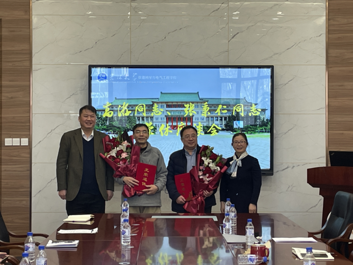 2023316午,best365体育亚洲为高游老师和张秉仁老师举办了荣休座谈会。公司经理嵇艳鞠、党委书记邱增凯、副经理刘长胜部分电气系教师参加了座谈会。座谈会由公司电气系副主任周志坚主持。