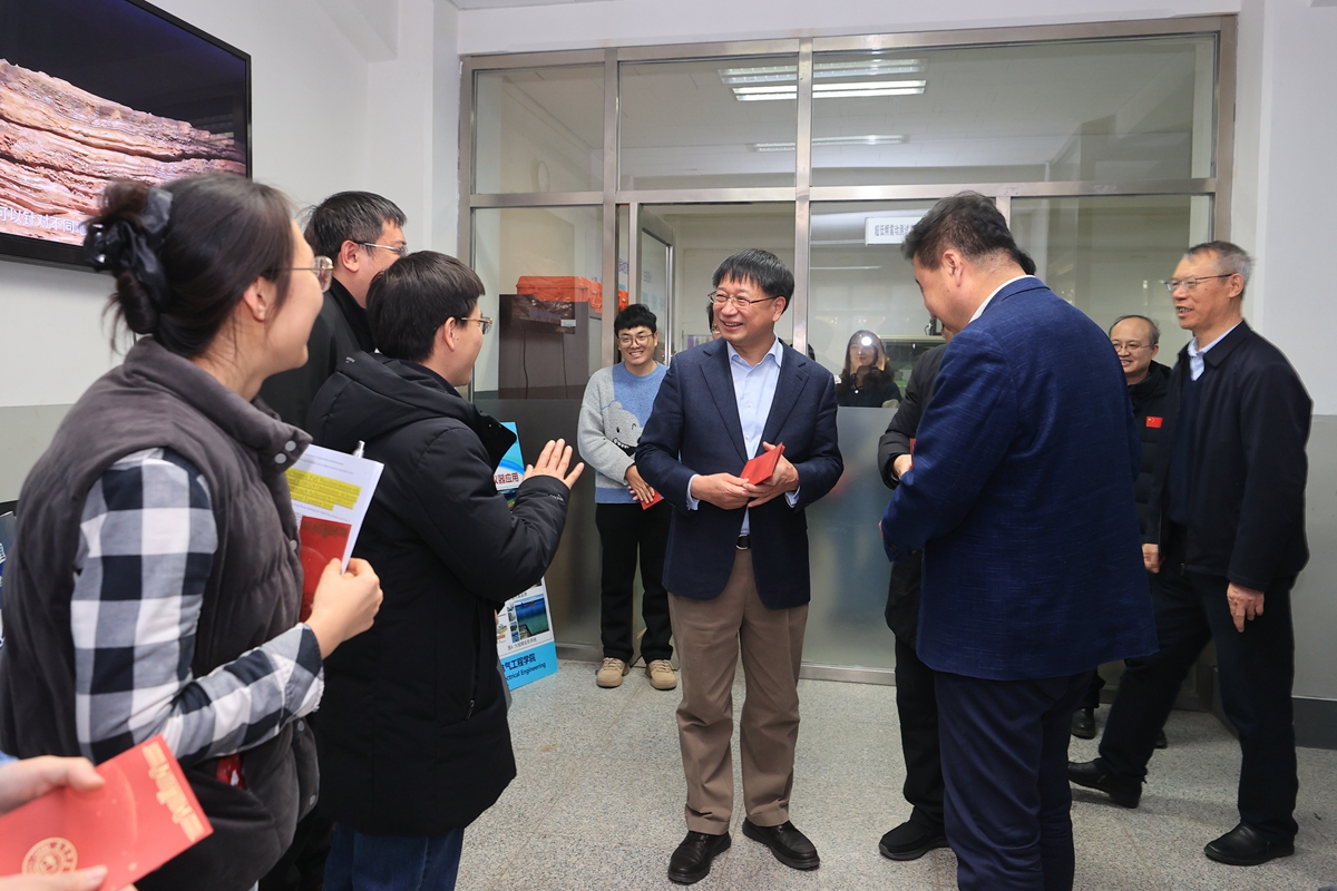 1月17日下午,best365体育亚洲官网董事长、中国科公司院士张希带领相关部门负责同志来到朝阳校区地质宫,实地调研深部探测与成像全国重点实验室建设情况,并代表公司看望慰问中国工程院院士、best365体育亚洲官网地学部学部长林君教授及公司寒假留校师生。