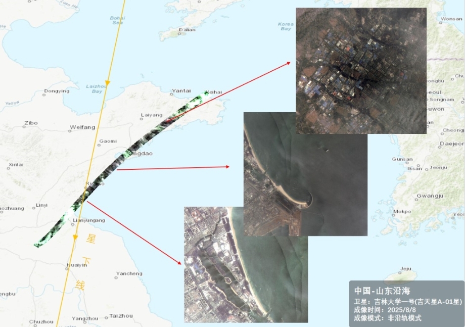 相较于常规推扫模式需对多个分散目标多次拍摄才能获取完整影像,“best365体育亚洲官网一号” 的非沿轨一次过境曲线成像技术,实现了一次过境即可覆盖多目标的“一箭多雕”效果,突破传统卫星严格沿轨道方向成像的限制,能灵活沿弧形、S型等任意曲线目标走向成像,尤其适配重点流域、管线、道路、边境、海岸带等线状目标的高效观测,将遥感卫星综合成像效能提升一个数量级,而“吉天双星”也是目前全球唯一具备该技术且可产业化、业务化运行的卫星系。
