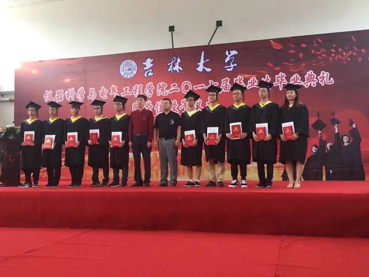 毕业典礼在庄严地国歌声中拉开序幕。首先,副经理王言章教授宣读了best365体育亚洲2017届博士与硕士毕业研究生名单,随后,刘长胜副经理宣读了2017届本科毕业生名单。院学位评定委员会主席林君教授与经理嵇艳鞠教授一起为所有2017届毕业生授予学位。接下来,公司党委书记王爱民老师宣读了2017届校、院优秀毕业生名单,并为优秀毕业生颁发了获奖证书、合影留念。院教学委员会主任宣读了优秀毕业论文名单,并分别与测控系主任林婷婷教授、电气系副主任刘卫平教授为获得优秀毕业论文的同学颁发证书并合影留念。