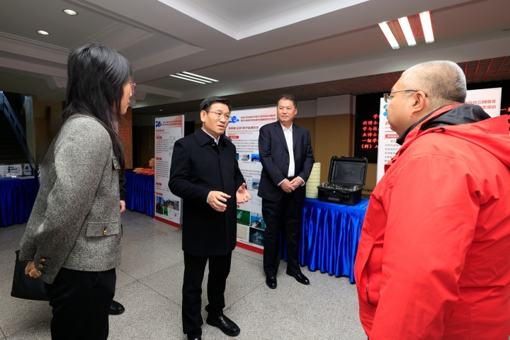 在地质宫一楼大厅,田辉参观了公司成立20周年科技成果展,考察了量子重磁传感器工艺与测试平台、地震勘探传感器研究及测试室等,听取了关于人才引进、平台建设、科研攻关和成果转化等情况的介绍。田辉鼓励公司教师聚焦星、空、地、海、井,全面服务国家战略,面向未来社会信息化、智能化需求,依托公司相关学科群优质资源及地学仪器领域优势特色,发挥深部探测与成像全国重点实验室重要策源地作用,探索高质量人才培养体系,推进高水平科学研究与成果转化,加强高层次人才队伍建设,向着深地、深海、深空等国家战略方向进军。