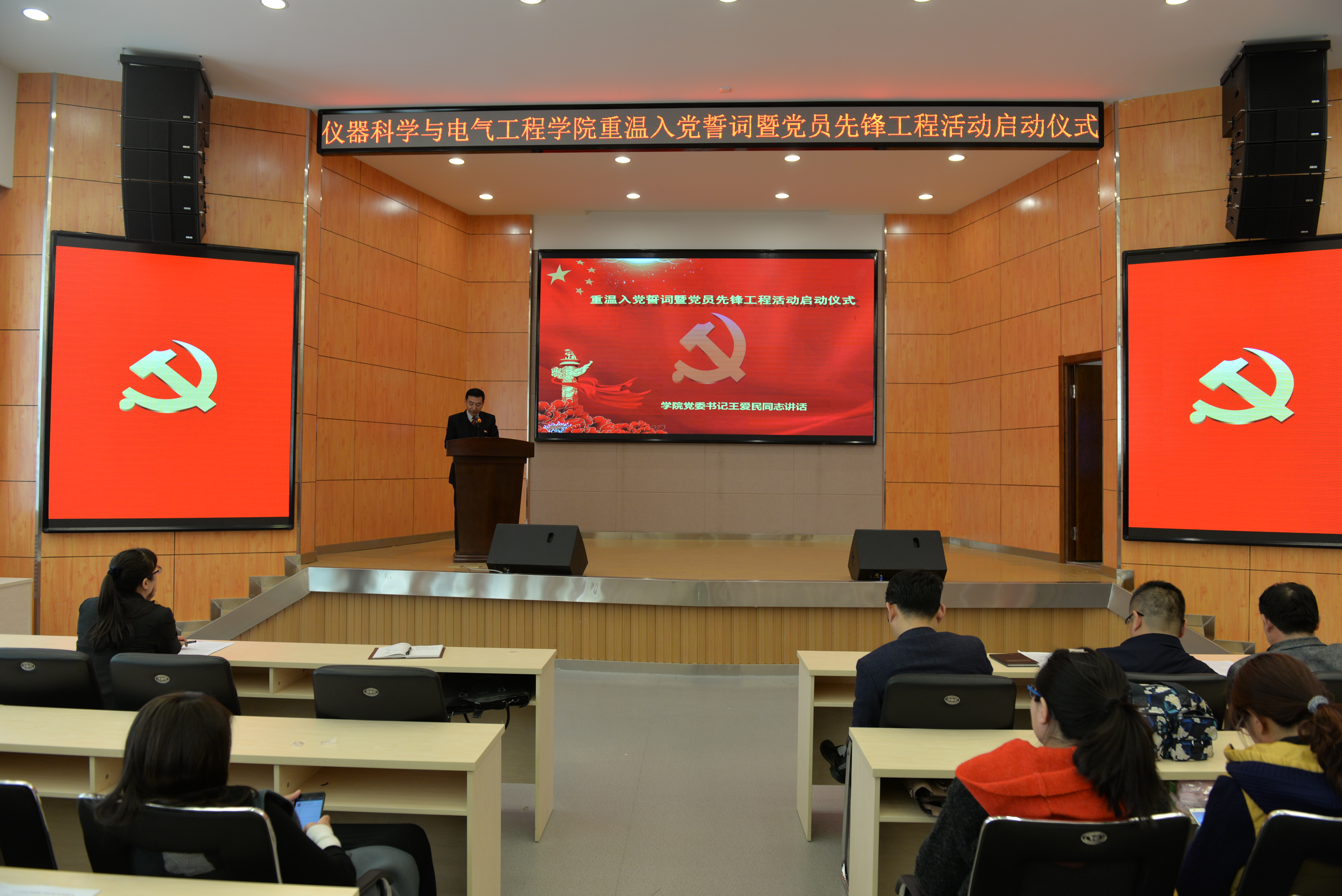 327日下午1:30,best365体育亚洲重温入党誓词暨党员先锋工程启动仪式在朝阳校区图书馆报告厅隆重举行。公司全体党员参加了启动仪式。仪式由公司党委副书记邱增凯同志主持。