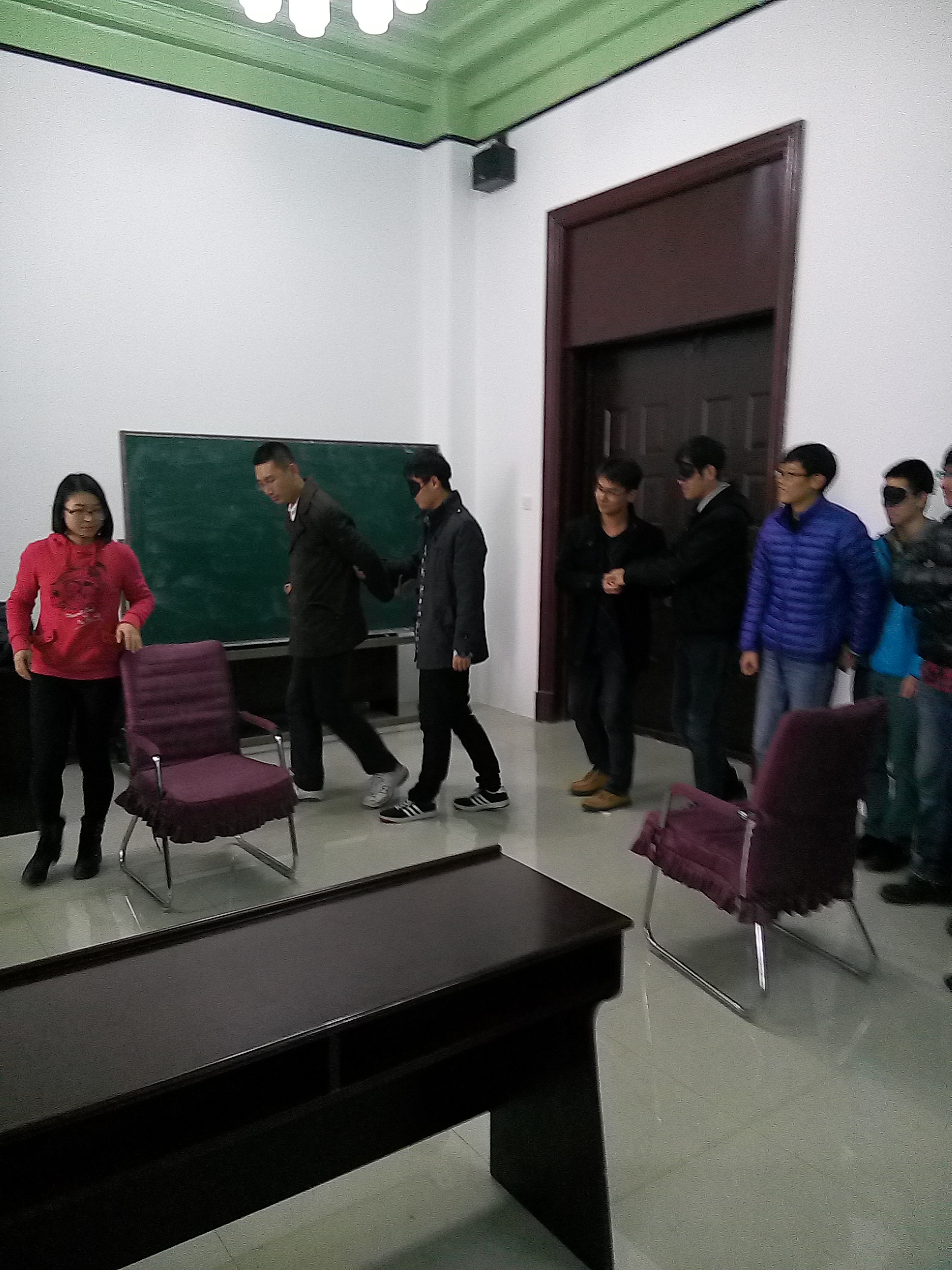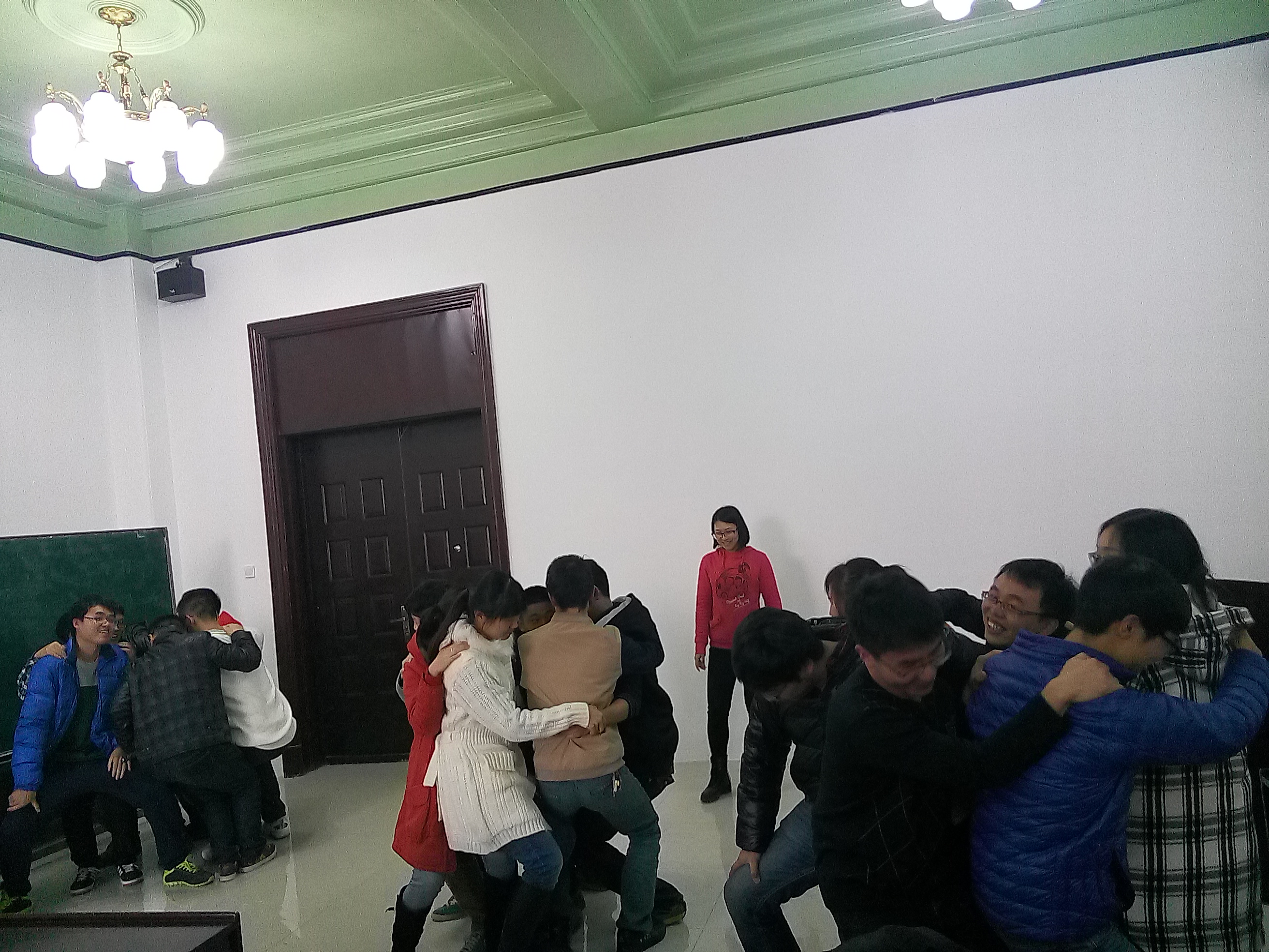 为了使2015级新入学研究生在在新环境中建立起心理支持系统,增强团体凝聚力,丰富研究生课余生活,促进班级成员的相识,建立互信。本次活动主要是组织员工开展团体心理辅导的实践体验。在实践体验中,通过 “1分钟热烈欢迎”、“无家可归”、“温柔体操”的游戏环节是同学们消除了戒备感,“信任之旅”、“集体登陆”、“快乐传递”等心理游戏,充分调动同学们的积极性和主动性,促进同学之间的相识和交流,快速建立基本信任感,使参加活动的同学们学会了如何相互欣赏,体会团队之间的协调与配合,从而提升班级凝聚力。同时,也使参加活动的同学们在体验中受到启发,在团体的交流和分享中获得感悟和提升。
