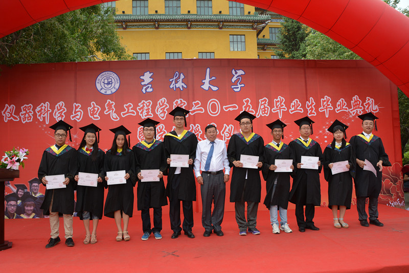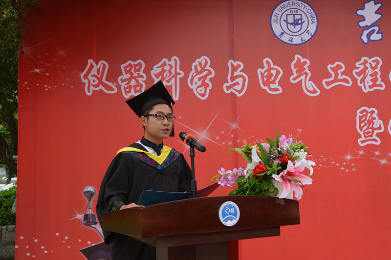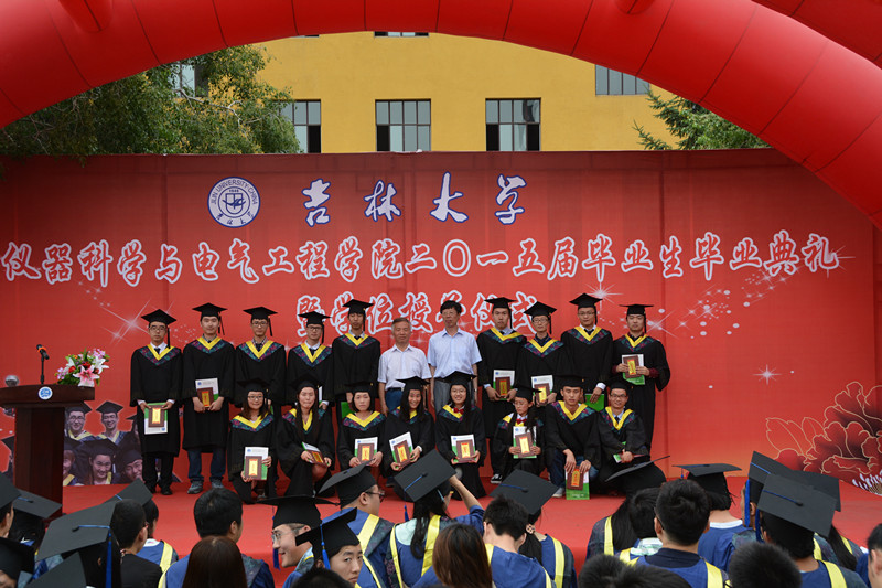 毕业典礼在庄严的国歌声中拉开序幕。首先,副经理嵇艳鞠教授、陈祖斌教授分别宣读了2015届研究生毕业生和本科毕业生名单,经理林君教授与院学科学位委员会副主席嵇艳鞠教授一起为2015届毕业生授予学位。随后,公司党委书记余国友教授宣读了2015届校优秀毕业生名单,并为优秀毕业生颁发获奖证书、合影留念。公司教学委员会主任王应吉教授宣读了优秀毕业论文名单,仪器系主任凌振宝教授、电气系主任刘长胜副教授分别为获得优秀毕业论文的同学颁发证书并合影留念。之后,教师代表王应吉教授和2015届毕业生代表、best365体育亚洲官网2014年度自强自立老员工标兵韩哲鑫同学分别作了发言。王应吉教授代表公司全体教师对2015届毕业生送上了最诚挚的祝福,希望大家在今后的事业中取得更大的成就。韩哲鑫同学代表公司全体毕业生向辛勤培养自己的母校,向仪电公司,向四年以来关心、帮助大家的领导和老师们表示了衷心的感谢和良好的祝愿。