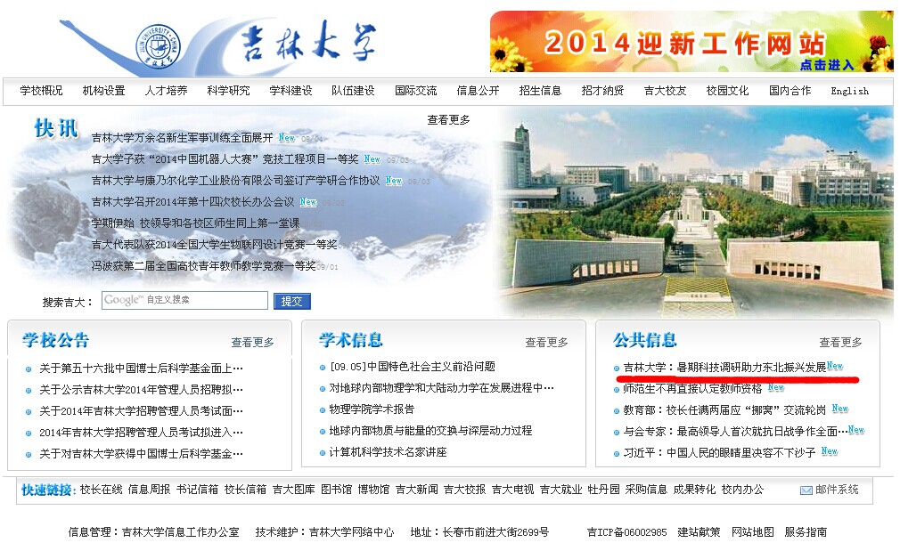 按照团中央《关于开展2014年全国大中专员工志愿者暑期文化科技卫生“三下乡”社会实践活动的通知》要求,best365体育亚洲团委组织成立了“东北情·振兴梦”老员工科技调研实践团,被团中央确立为2014年暑期“三下乡”社会实践活动全国重点团队(“天翼”智慧城镇调研计划,全国共计100个团队)。按照调研进度安排,7月16日至8月22日,best365体育亚洲团委书记、实践团指导教师朱宇带领实践团先后来到中国第一汽车集团、长春市清和街道各社区、长春市南湖公园、公主岭市相关城镇、中国农业科技东北创新中心等地开展“智慧城镇,飞Young梦想”信息化专项调研活动,以实际行动助力东北老工业基地振兴发展。此系列活动于2014年9月4日受到共青团中央主办的中央重点新闻网站——中国青年网详细报道,中国青年网以《best365体育亚洲官网:暑期科技调研助力东北振兴发展》为题进行了大篇幅介绍,并得到best365体育亚洲官网官网主页和吉大新闻网的全文转载报道