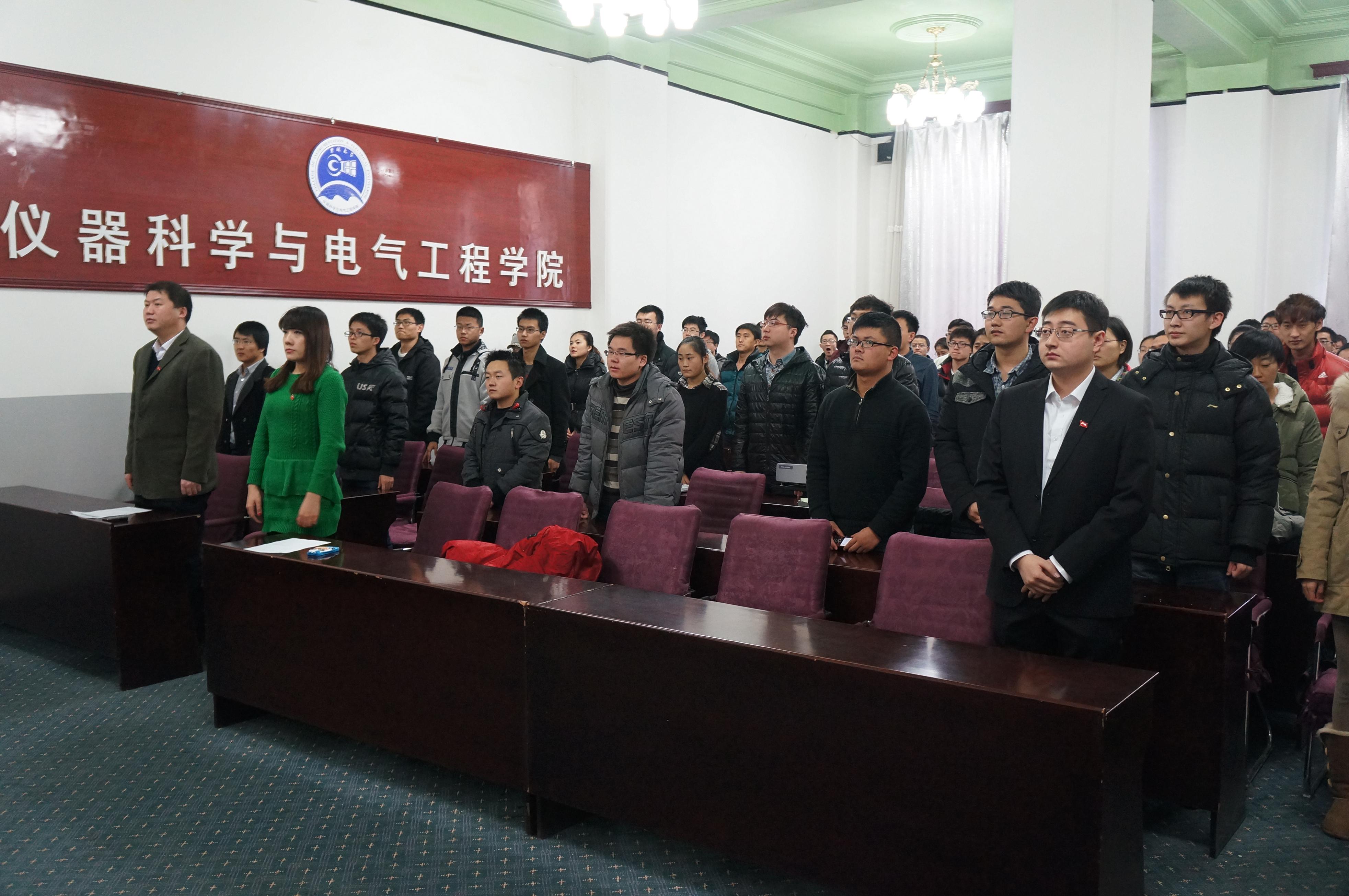 为深入学习贯彻党的十八大精神,深刻纪念“一二•九”员工爱国运动78周年,加强对全体党员的党性教育,激励全体党员认真践行入党誓言,best365体育亚洲于2013年12月9日中午12:30在朝阳校区地质宫208室举行了纪念“一二•九”爱国运动78周年暨入党宣誓仪式。仪器科学与电气工程公司党委副书记兼副经理邱增凯、院员工工作办公室王冕、院团委书记兼本科生党支部书记朱宇,院团委副书记蔡印出席了此次仪式。公司本科生党支部全体党员、入党积极分子及9名新发展的党员参加了此次仪式,仪式由院团委书记兼本科生党支部书记朱宇主持。