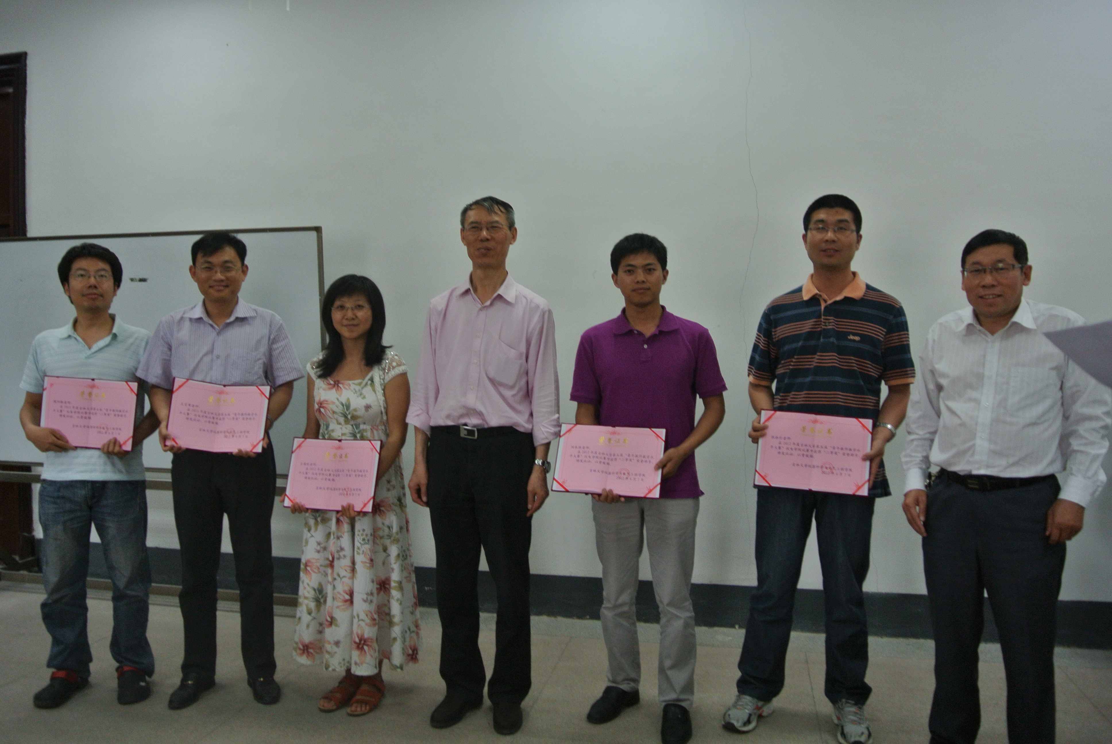 首先程德福副经理宣读公司对优秀班导师、青年教师教学大赛、青年教师双语大赛获奖人员的表彰决定,林君经理、余国友书记为获奖教师颁发荣誉证书,程经理在会上对2012年上半年教学工作进行总结,并对下周监考、评卷工作提出要求;余国友书记宣读公司对员工工作的奖励决定;陈祖斌副经理就2013年科技项目立项、申请工作进行说明;邱增凯副书记讲了近期毕业生工作的安排;房华副经理对放假前防火、防盗工作提出要求,对公司行政工作进行说明;最后林君经理对如何提高全院教师队伍业务能力,提升整体素质提出相关要求。