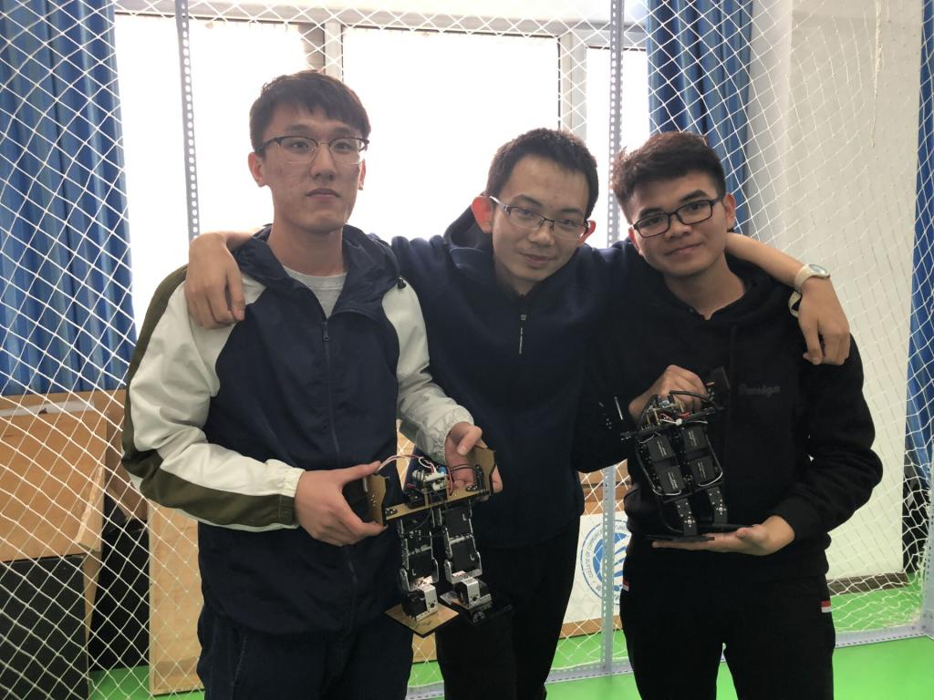 本次比赛项目分为全地形小车和双足机器人,2017级新生从新学期开学就已经开始准备,每一队的机器人都力争最高的性价比。参赛队员在一大早就进入比赛场地进行调试。调试过程中既有老师们亲切指导也有学长们经验传授。下午比赛正式开始,首先进行的是双足机器人的比赛,该比赛以竞速为主,主要考验双足机器人机械结构的稳定性以及程序的合理性。紧接着进入全地形小车项目的比赛,全地形小车的比赛以考验小车的循迹越障功能为主,要求小车要有循迹和应对不同地形的能力。经过激烈的角逐本次比赛共产生一组一等奖,一组二等奖和一组三等奖。为了鼓励参赛队员取得的优异成绩,由千承辉老师赞助并颁发丰厚的奖品。赛后队员和众位老师学长们一起进行了讨论,让2017级新生们对此次机器人比赛有了更深刻的认识。