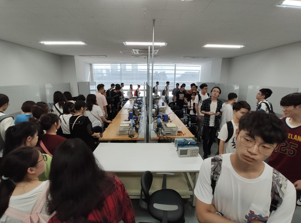 在访学期间,汉阳大学邀请知名教授为公司访学团做了关于人工智领域的讲座,内容涉及游戏化的高科技产品和医疗器械的新方向。同学们积极提问并展开了热烈的讨论。公司访学团与汉阳大学工科员工举行了座谈会,在专业学习、留学深造、就业创业等方面进行了交流。公司访学团还参观了汉阳大学未来汽车工学馆中的实验室,进一步开阔了视野。