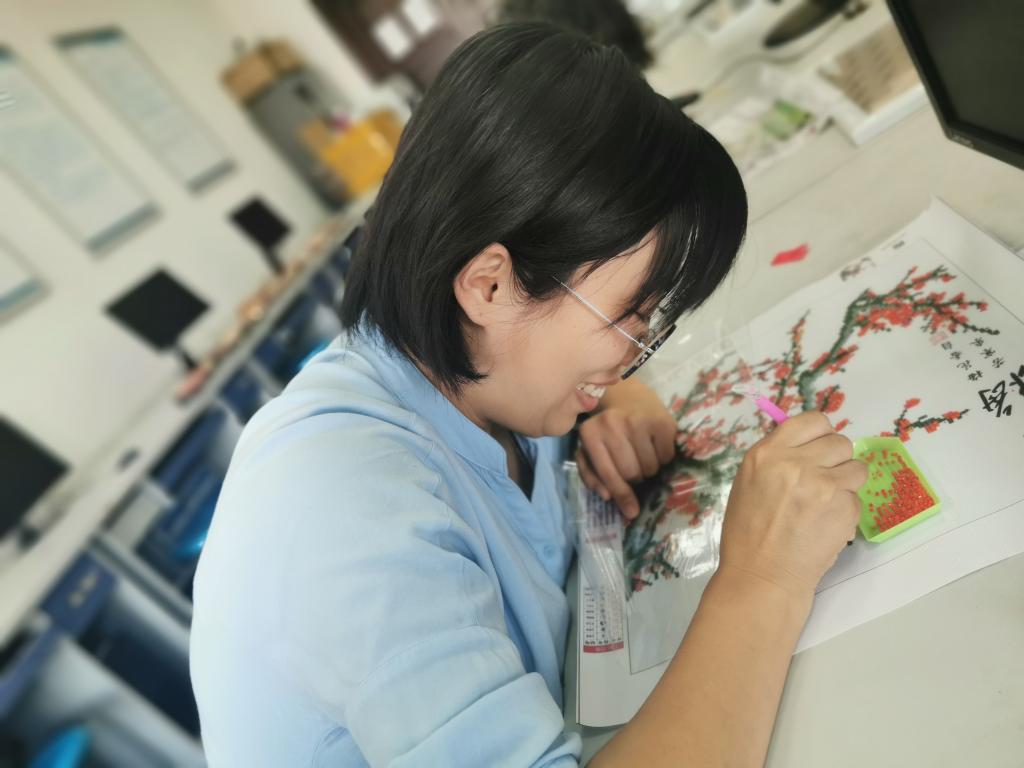 为庆祝新中国成立70周年,向国庆献礼,为祖国祝福,9月29日best365体育亚洲全体女教职工在地质宫412室举办了“钻石画手工艺品,向祖国献礼”活动。