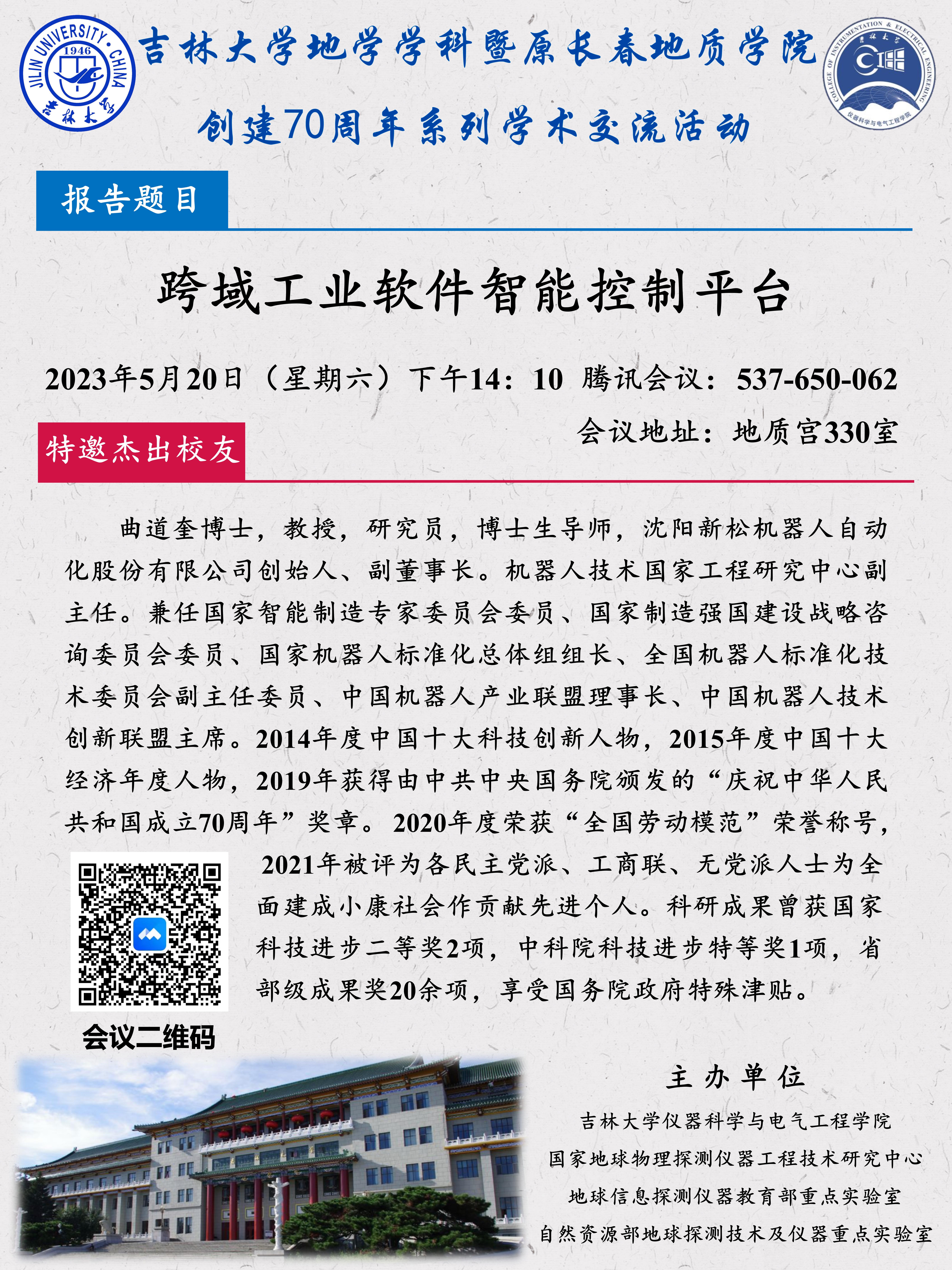 best365体育亚洲官网地学学科暨原长春地质公司创建70周年系列学术交流活动——特邀杰出员工曲道奎