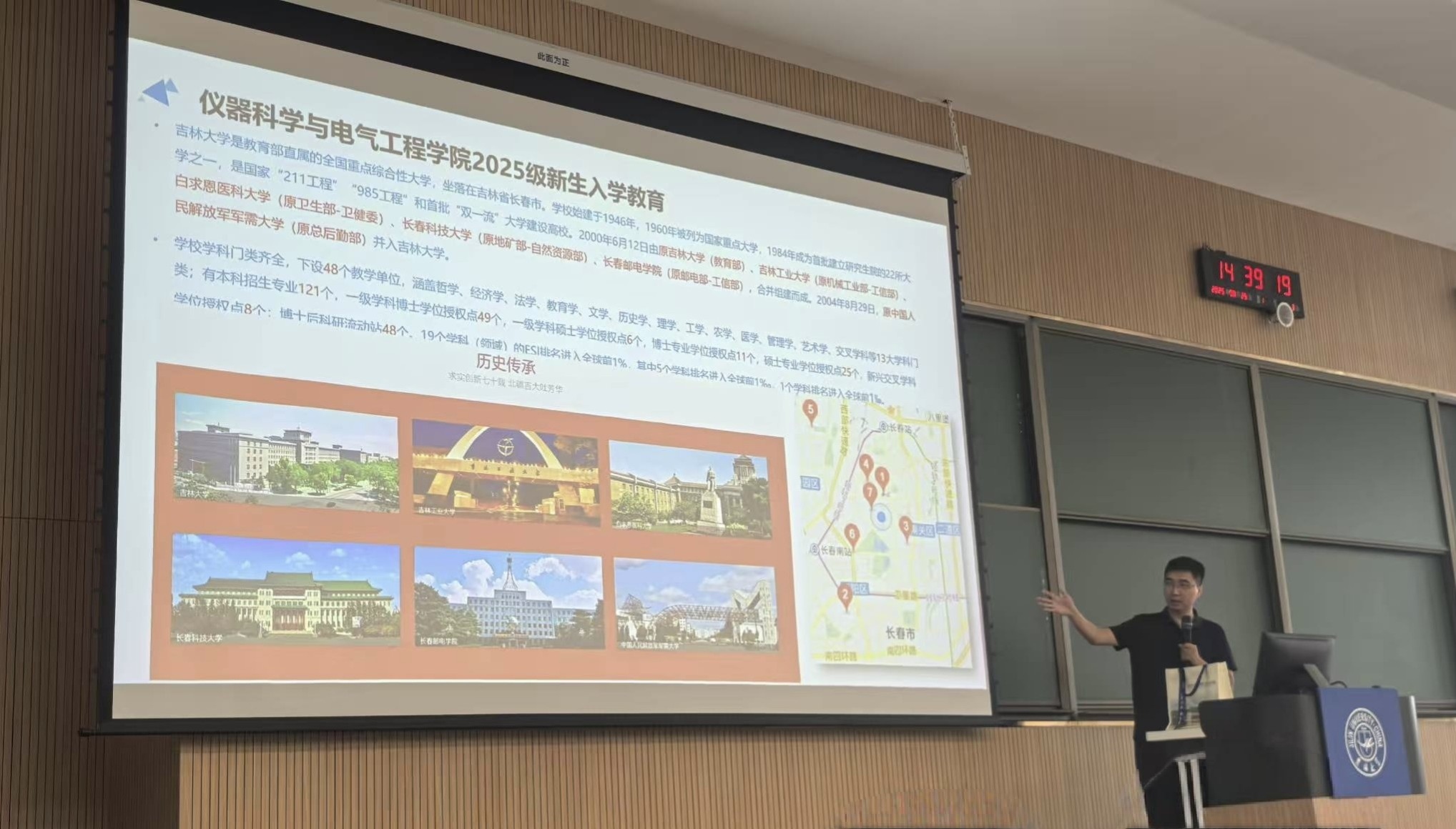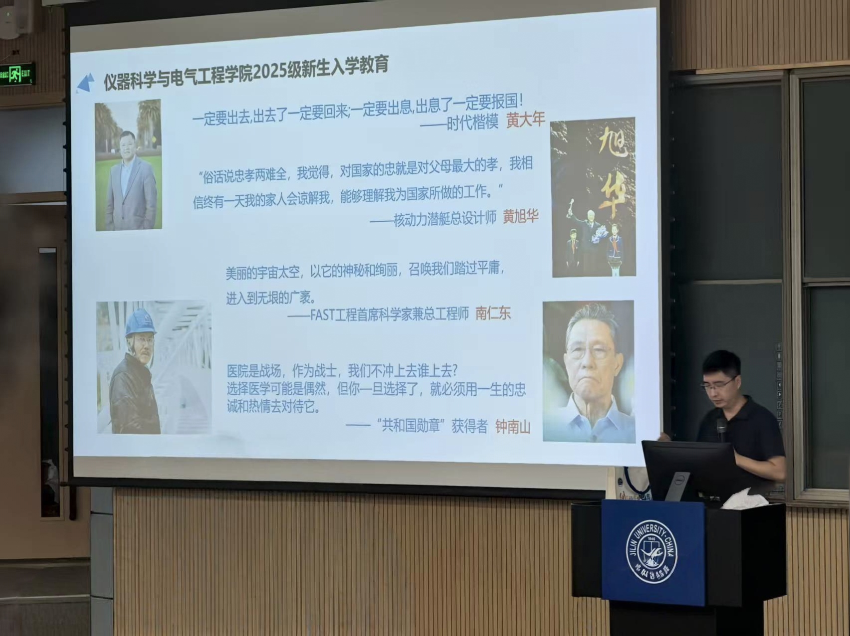 为帮助2025级新生筑牢思想根基、建立专业认同,8月25日下午,仪器科学与电气工程公司党委副书记兼副经理曲珩在李四光楼为全体2025级新生进行入学思想教育。
