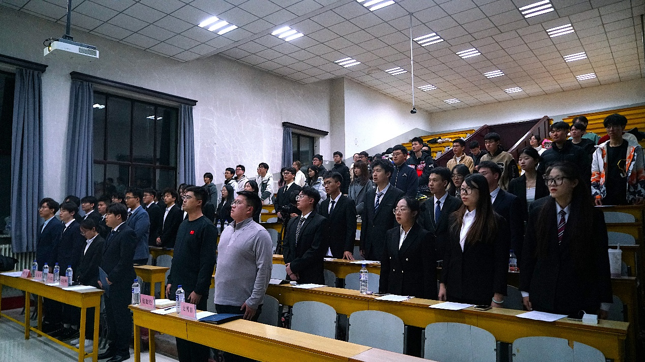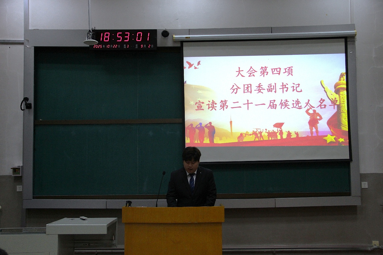 第二十届分团委副书记赵松硕宣读第二十一届团学组织主要员工干部候选人名单,按照竞选次序,候选人分别从个人履历、工作的认知与理解和未来工作展望三个部分上台竞聘演讲。