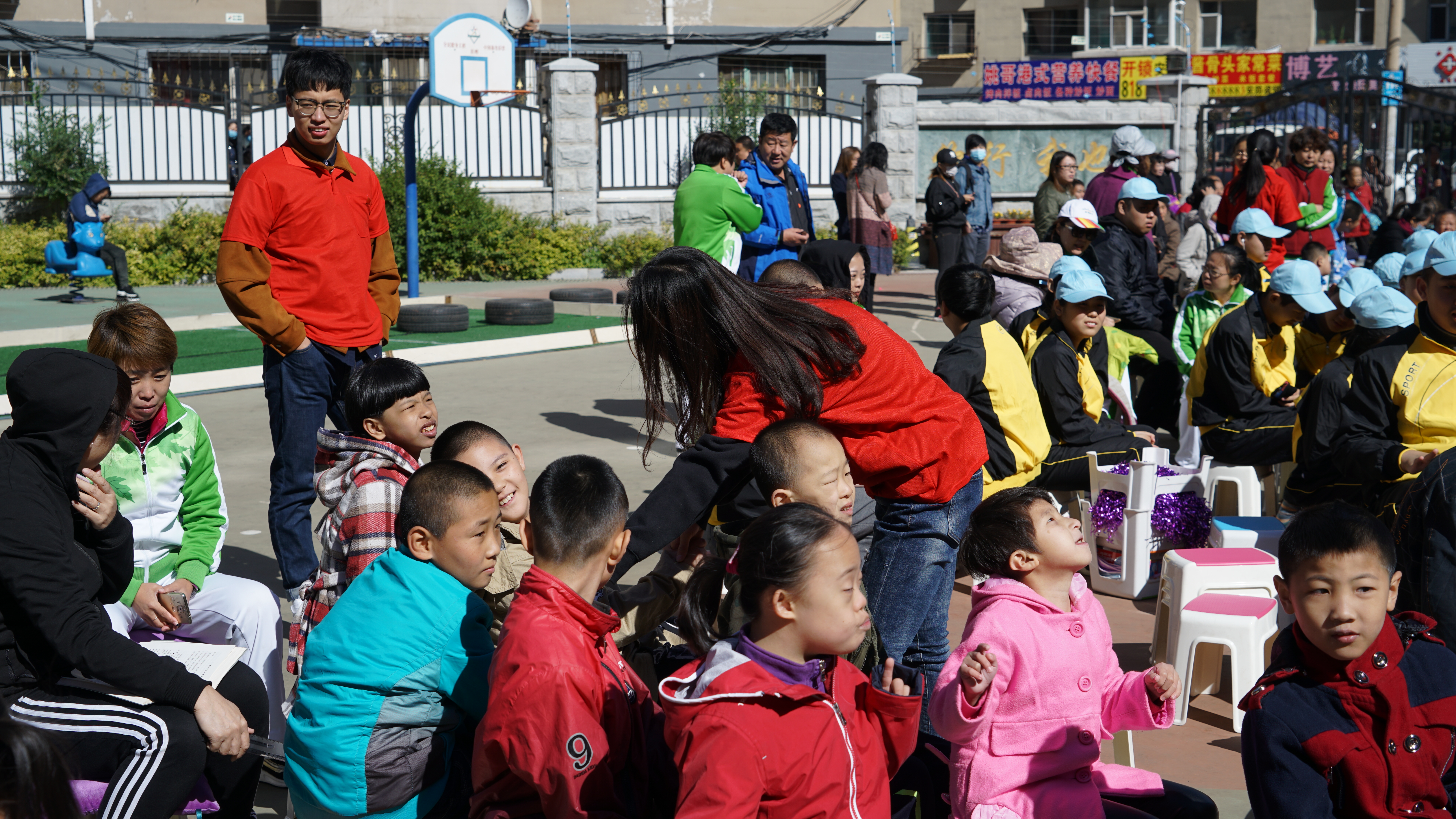 9月26日,公司的牵手志愿者协会因了解到这次活动的对象是一些特殊的孩子们,为了保证在与孩子们交流或游戏时不出意外,特意在活动前期前往育智公司,在公司的领导老师的帮助下,志愿者们对孩子们的身体情况、心理状态进行深入的了解,并学习了一些与孩子们能迅速熟悉的方法。调研结束后,院团学组织又集体讨论了志愿服务活动方案,悉心设计准备了给孩子们的小礼物。活动当天,志愿者们清早便来到了育智公司体育场,志愿者同老师沟通,共同安排并布置了运动会场地,志愿队员们知晓了各自的任务。8:40,运动会正式开始,志愿者们细心地带领着各年级的孩子们参与了运动会开幕式的检阅。在老师的指导下有序的工作着,各自做好维持赛场秩序,完成检录工作,照看孩子们和后勤保障的工作。在比赛场地,志愿者们帮助老师布置比赛道具,同时热心、耐心地帮助和鼓励参与比赛的运动员。在观众席,志愿者和老师们带着啦啦队为运动员加油。比赛的欢乐让孩子们忘记了天气的寒冷,脸上都洋溢着开心的笑容。秋日的天高云淡配合着志愿者们的热情、孩子们的天真烂漫构成了运动场最美的图画。上午11:20,趣味运动会圆满结束,志愿者们把带来的糖果和零食分发给各个班级的孩子,当孩子们奶声奶气地说着“谢谢哥哥姐姐”的时候,每一个志愿者的心都跟着颤动,志愿队伍的女队员更是情不自禁,拥抱这些可爱的孩子们以表达不舍。