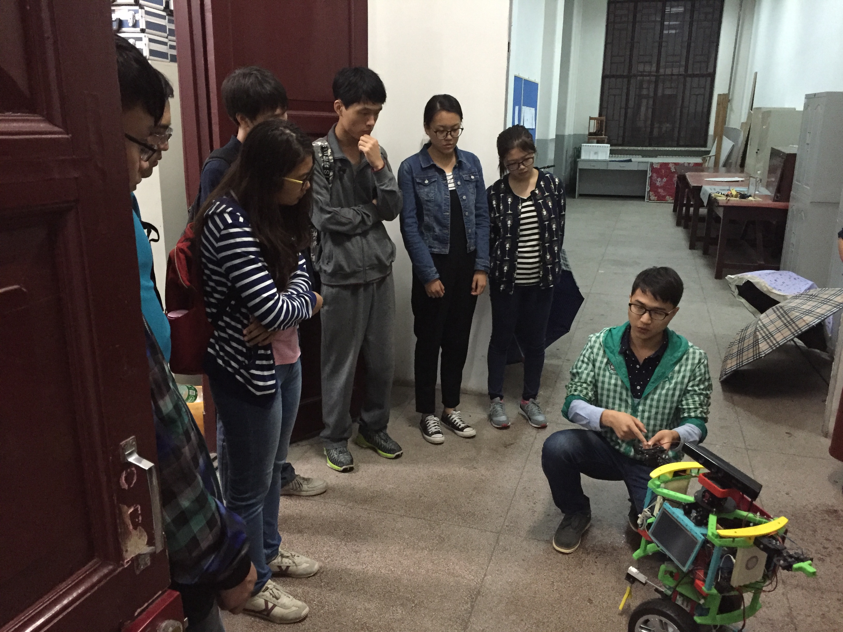为响应共青团中央和校团委的号召,深入学习宣传贯彻党的十八大和十八届五中全会以及习近平总书记系列重要讲话精神,引领广大青年员工树立和践行社会主义核心价值观,坚持社会实践与专业学习、创新创业、实验实践的有机结合,best365体育亚洲组建科技创新团队于2016年7月4日至2016年9月7日开展“投身十三五共创科技梦”暑期“三下乡”活动之专业社会实践活动,旨在为有志青年员工提供一个良好的学习、交流和实践的平台。公司科技创新团队于2016年8月21日晚上18:00特邀千承辉老师及2013级学长在地质宫216教室举行了机器人培训。专业社会实践机器人爱好者参加本次讲座。