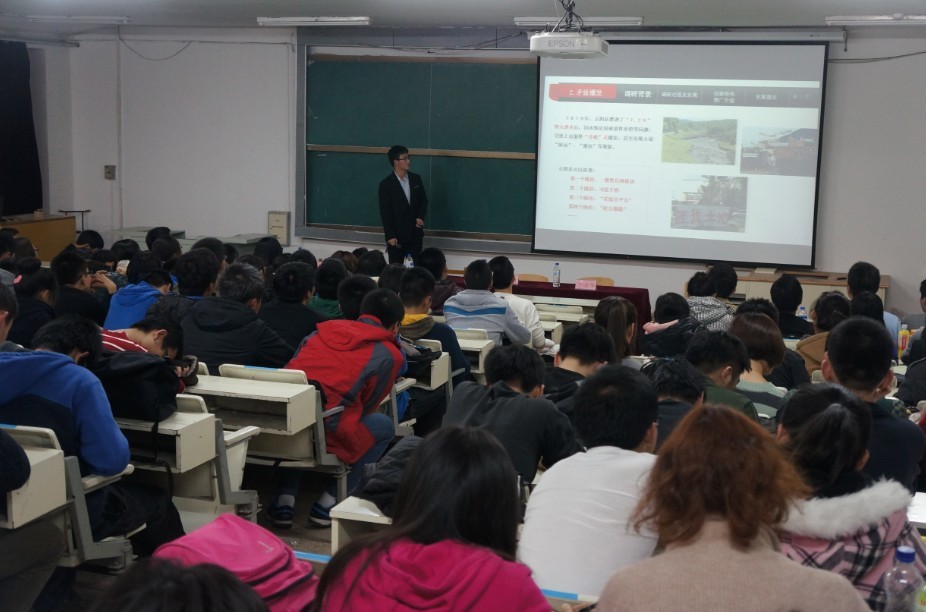 为丰富公司科技创新活动,搭建科技创新交流平台,营造浓厚的科技创新氛围,展示公司挑战杯的优秀成果,分享挑战杯的辉煌成绩,感受挑战杯获奖团队的独特魅力,全面激发青年员工参与科技创新活动的热情,校团委主办了best365体育亚洲官网第十三届挑战杯全国老员工课外学术科技作品竞赛获奖团队校园巡讲活动。201311818:00,第四场巡讲活动在朝阳校区水工楼518阶梯教室举行,本场巡讲由best365体育亚洲团委承办,校团委学术部部长魏海成、best365体育亚洲团委书记朱宇、挑战杯获奖团队成员以及来自地学部的近200名同学参加了本次活动。
