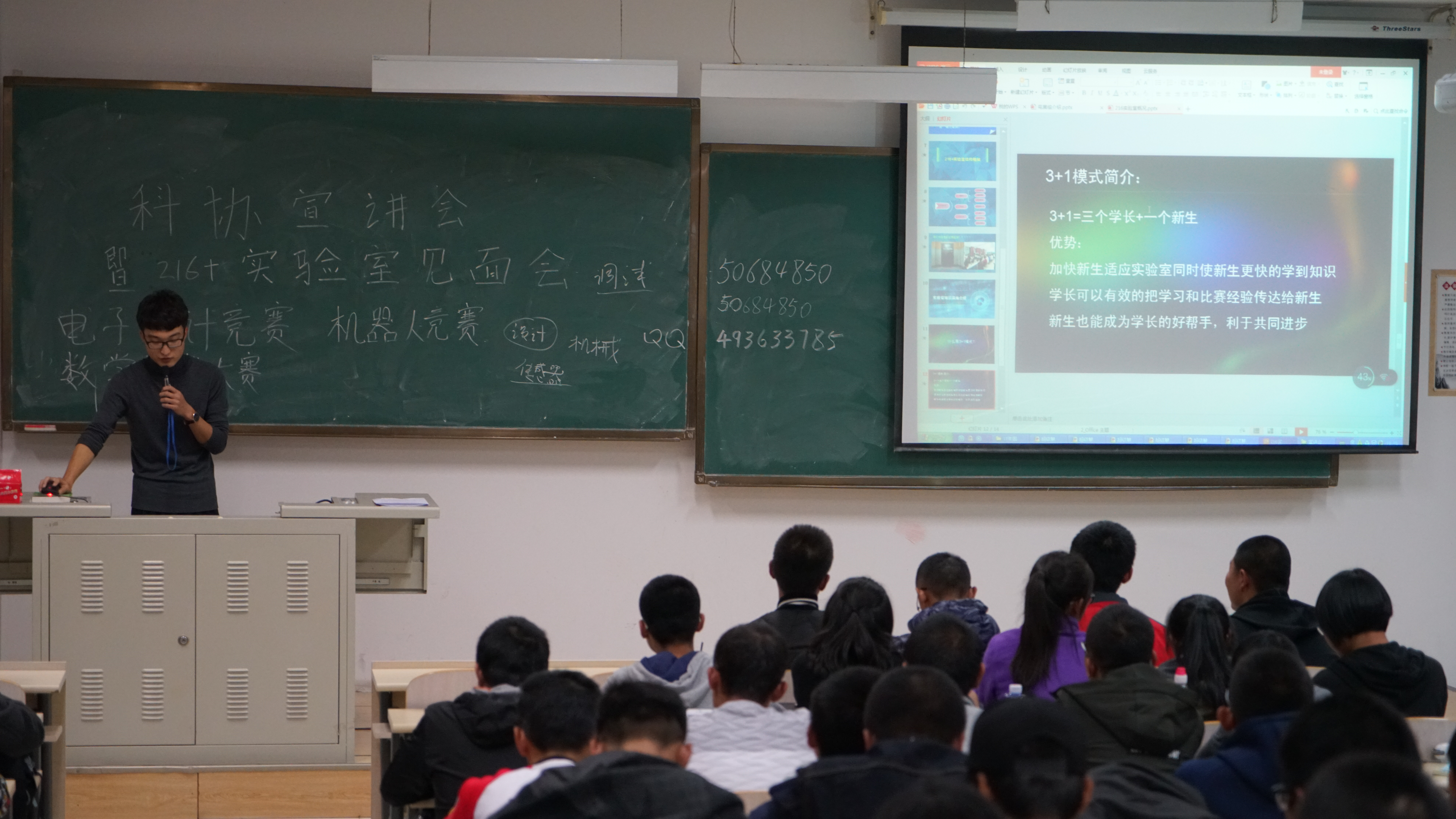 为加强老员工动手实践能力,推进老员工科技创新意识,20171017日晚上600,由best365体育亚洲老员工科技创新协会举办的老员工科技创新协会宣讲会暨216+实验室成员见面会在best365体育亚洲官网中心校区李四光教学楼107教室举办。参与本次宣讲活动的有科协全体成员以及2017级全体新生,旨在推进公司科技创新协会的进步与发展,在公司营造出一种科技创新的学术氛围。