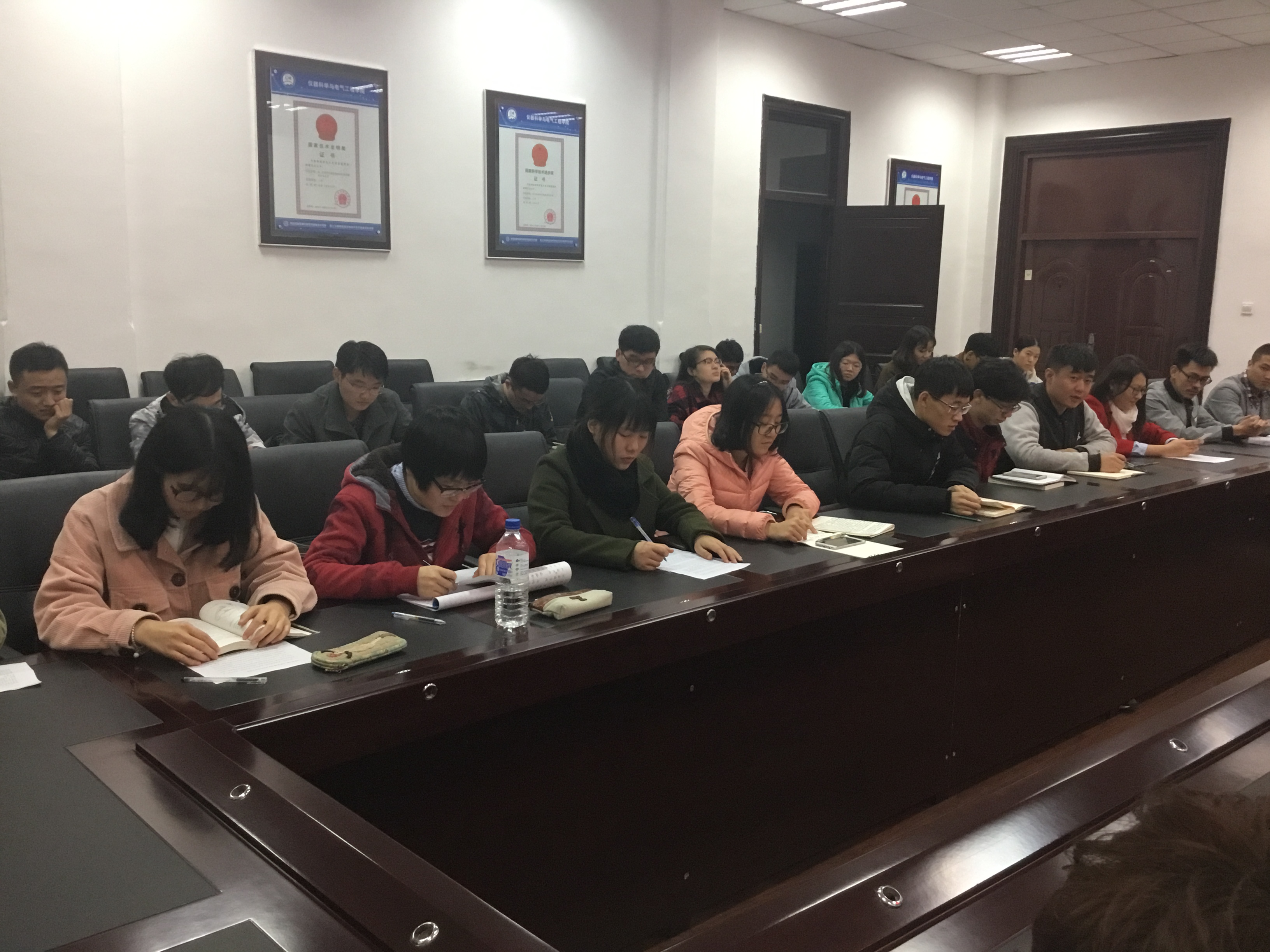 会议伊始,本科生党支部书记张昊宇老师对十九大报告精神进行传达。随后,在座同学党员就他们对十九大报告的感悟进行有序发言,表达了自己的感悟与收获,以及对未来的期望。发言期间,在座党员均认真倾听,频频点头,并不时进行记录。伴随着一次又一次精彩的发言,同学们各式各样的思想不断碰撞,各种角度的感悟也引起了大家的思考,加深了对十九大报告精神的理解,营造了和谐的交流氛围。