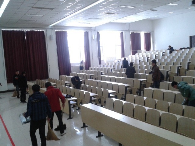 活动按照事先安排,将班级全体同学分为四组,分别负责不同的清扫项目。活动过程中,所有同学都积极配合各小组的负责人,将自己所分配的工作认真完成。李四光楼第一、二阶梯教室作为经常使用的大教室,与许多同学的日常学习息息相关,通过此次清扫卫生活动,可以为大家提供一个干净舒适的学习环境,带给大家一份愉悦的心情。与此同时,通过活动同学们默默奉献,团结协作,增强了班级团支部的集体意识,也增强了班级团支部的战斗力和凝聚力。