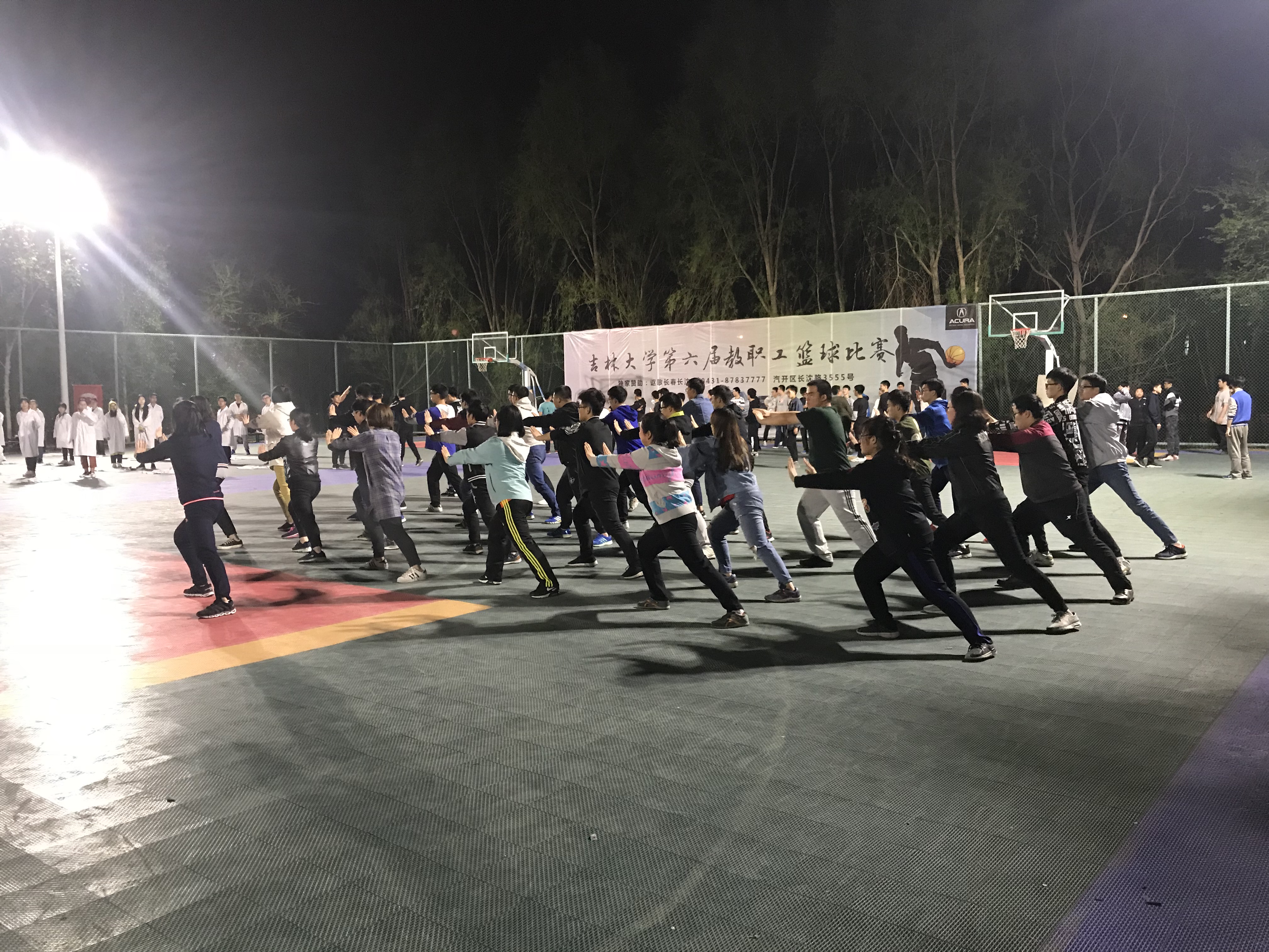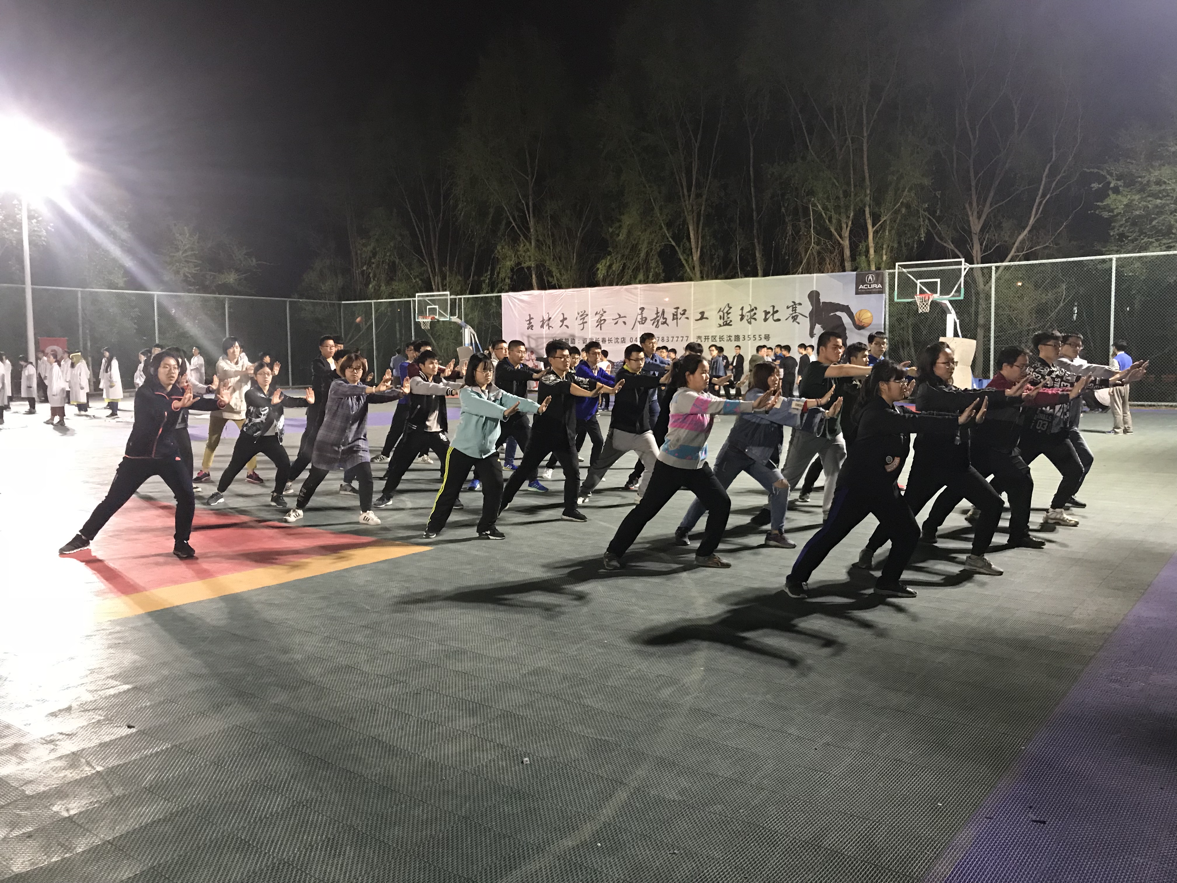 为迎接即将到来的校运动会,展现仪电学子的活力与风采,best365体育亚洲于2018年4月20日开始在体育馆东侧篮球场展开太极拳的训练工作,并固定在每周的周二、周四、周五和周日的晚上9:00-10:30进行训练。