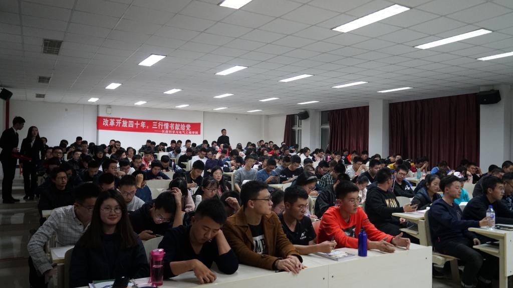 紧接着,2018级各班围绕“改革开放四十年”依次上台宣讲,他们展示了自从“改革开放”政策实施以来祖国翻天覆地的变化以及对这一政策的个人理解,最后以“三行情书”的形式表达了对党、对国家的热爱之情。各班宣讲结束后,2016级员工代表崔猛同学为本次活动进行了精彩的演讲。最后,根据评委嘉宾现场评分的统计结果,2018级4班荣获本次活动一等奖,6班和7班荣获二等奖,1班、2班、3班和5班荣获三等奖,最后颁奖嘉宾为获奖班级颁发了荣誉证书并合影留念。