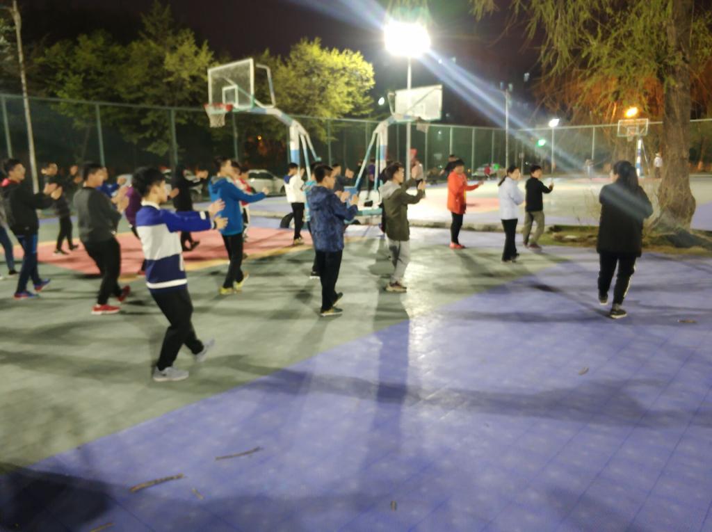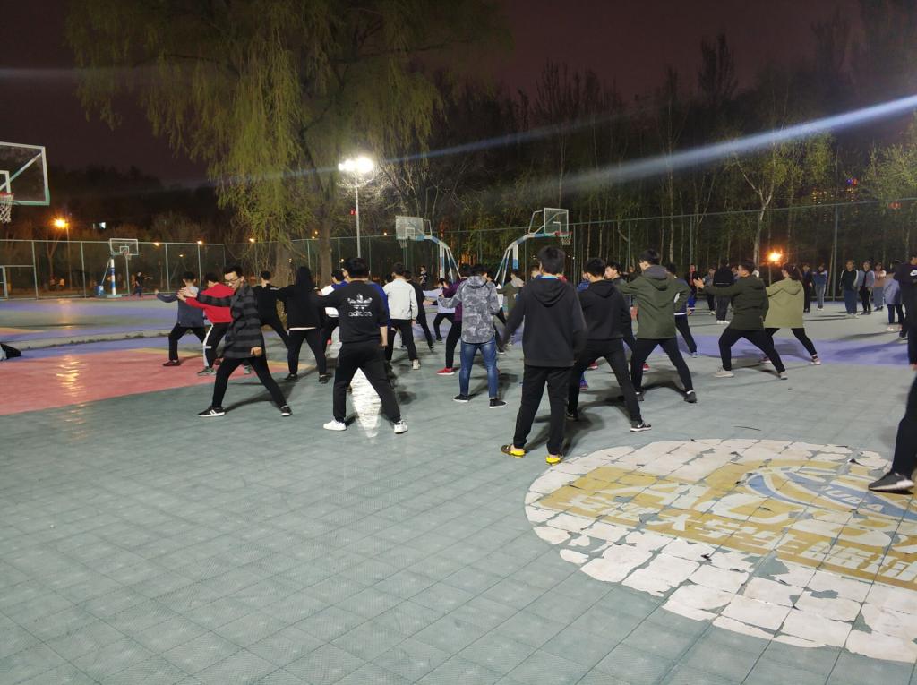 5月9日晚上9:00,仪电公司太极训练如期在行政楼篮球场展开,每一位太极方队的队员在教练宋雨鑫的指导与带领下连贯的学完了所有动作,有条不紊地重复练习每一招一式以加深印象。在流畅、舒缓的音乐中,队员们的动作舒展,节奏与队伍整齐度把握也待改善每一位队员都全神贯注的训练在教练的指导下调整自己每个动作,虽然现在的动作并不是十分完美,但大家的一招一式中都展现出了太极的柔和之美。