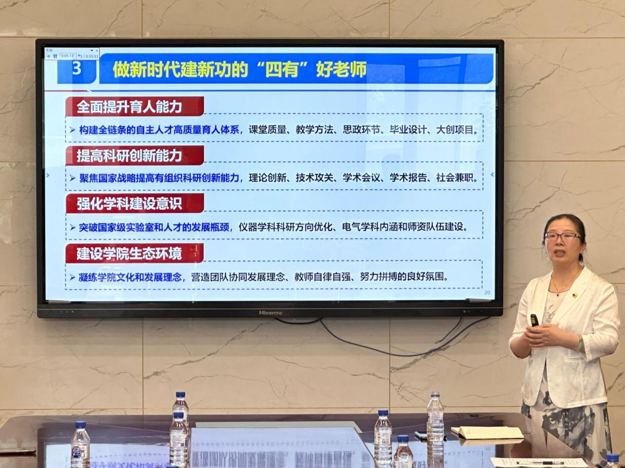 为深入开展学习贯彻习近平新时代中国特色社会主义思想主题教育,落实“学思想、强党性、重实践、建新功”的总要求,全面提高教师思想政治素质和职业道德水平,7月3日下午,在中国共产党成立102周年之际,best365体育亚洲经理嵇艳鞠教授以“争做新时代育人‘四有’好老师,为打造一流教育科技人才建新功”为题为全院教师党员讲授专题党课,公司全体领导班子成员参加了党课学习,公司主题教育第5指导组组长王爱民同志到会指导。