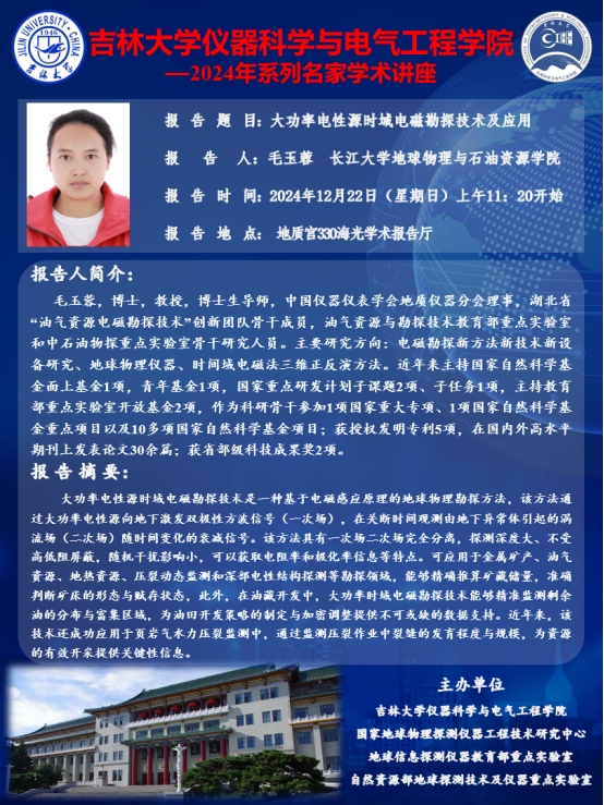 2024年系列名家学术讲座——毛玉蓉 长江大学地球物理与石油资源公司