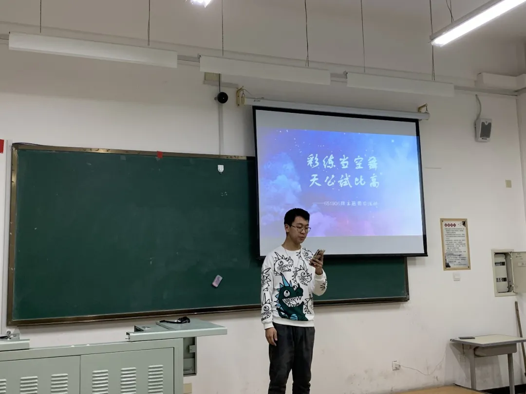 活动开始,邓昌伟同学简述了活动主题以及活动内容,并呼吁大家积极思考,积极参与讨论。随后,同学们共同观看了纪念人民空军成立71周年的视频,并在观看后进行自由讨论,陈思桐同学和王宇航同学作为同学代表进行发言,抒发了大家对于人民空军的崇敬之情以及对于先烈的缅怀。紧接着,张昊锐同学进行了题为《仗剑蓝天的梦》的诗朗诵,诗词慷慨激昂,表达了对于人民空军的真诚赞美和祝福,他们英勇无畏的精神和所向披靡的风采将永远被我们铭记。最后,邓昌伟同学进行了活动总结。至此,本次团日活动圆满成功。