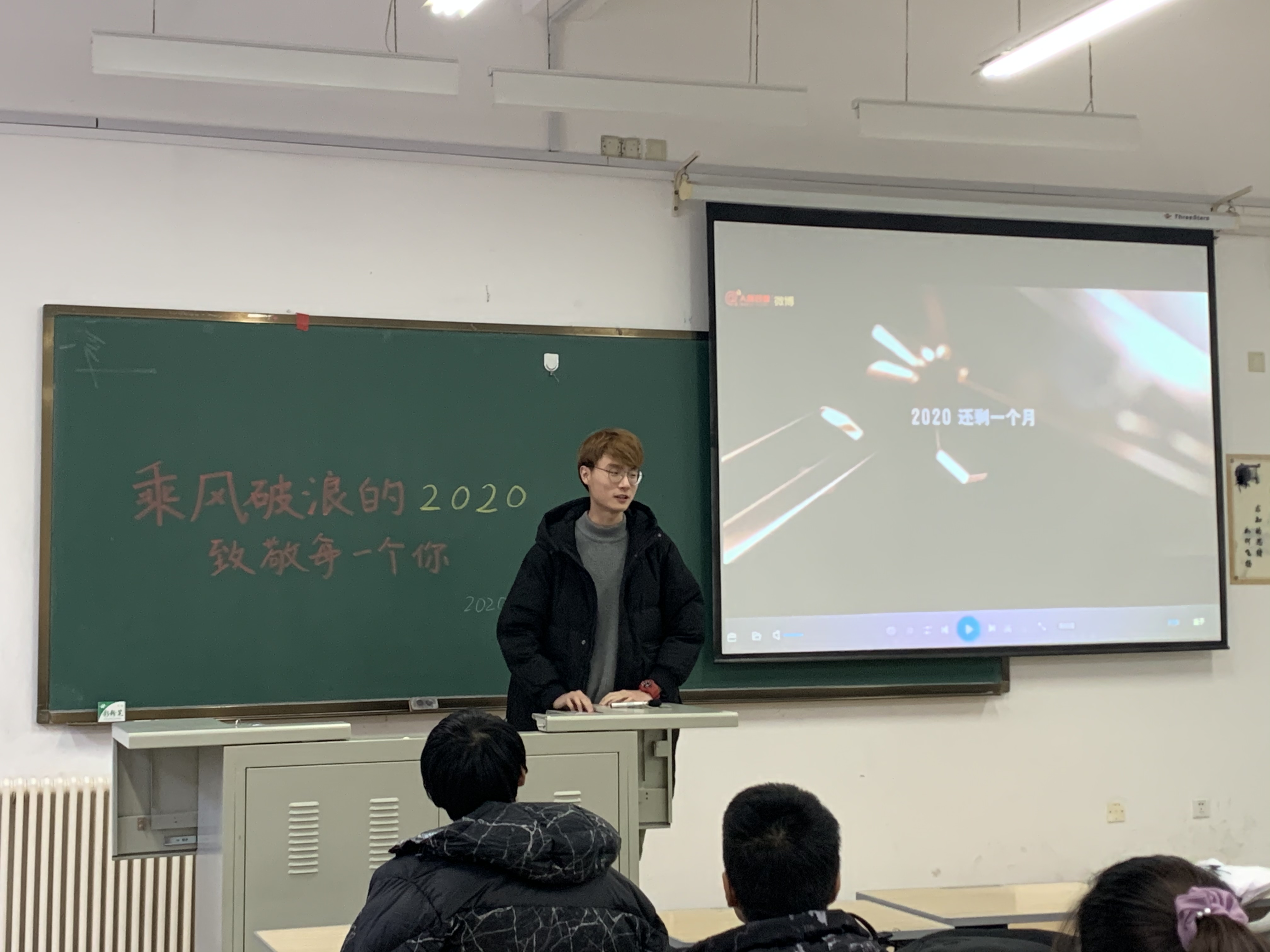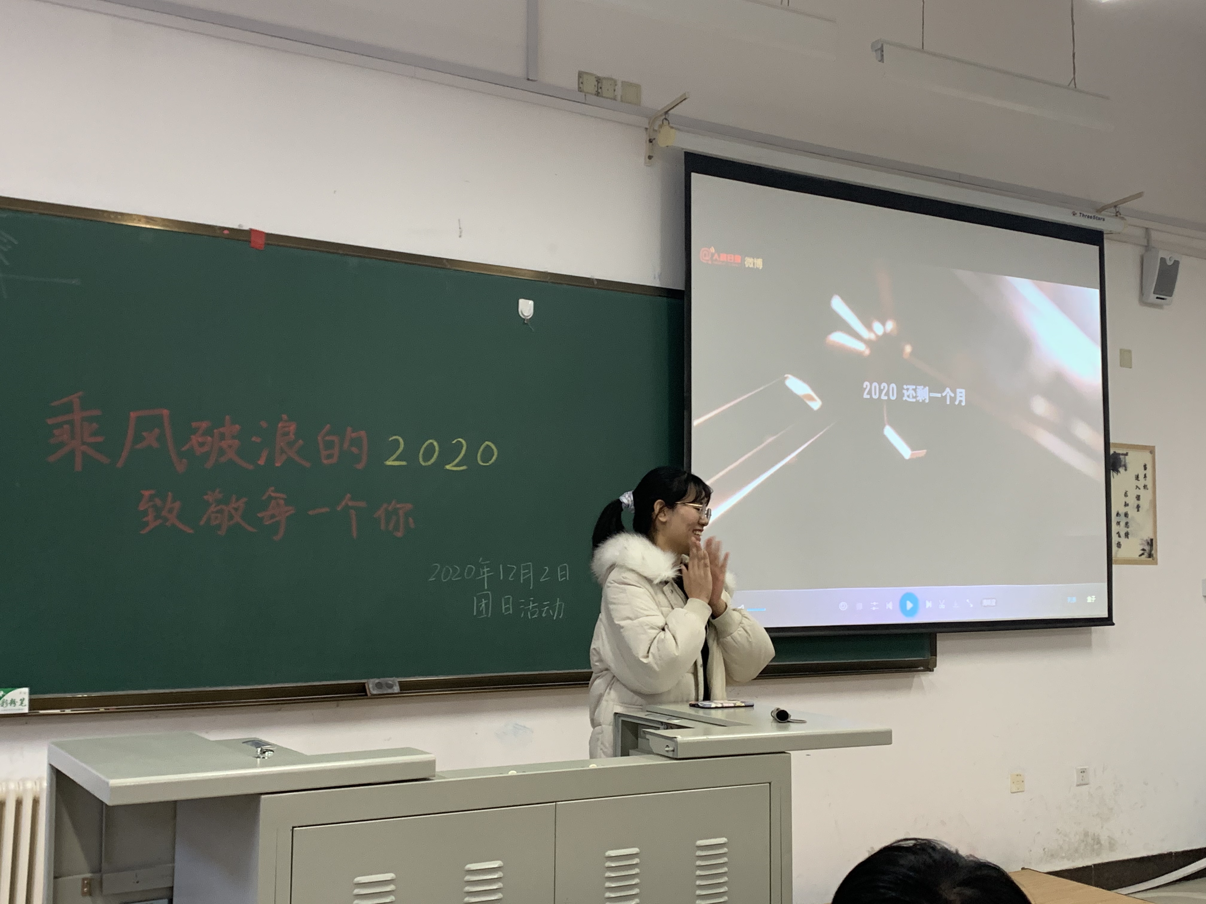 为促进同学们的交流,增进同学间的友谊,回顾2020年的点滴,迎接2021年的到来,best365体育亚洲651904团支部于2020年122日下午320在李四光教学楼114教室举办以乘风破浪的2020,致敬每一个你”为主题的团日活动。本次活动由高思琦同学主持,651904班全体人员参与本次团日活动。