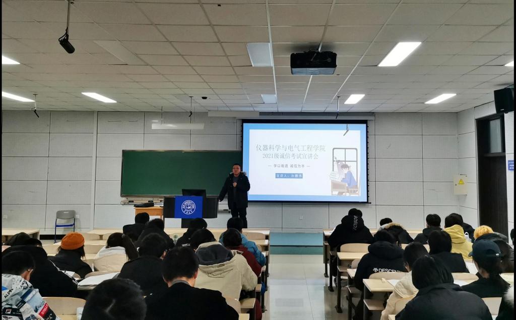为全面贯彻落实best365体育亚洲官网2021-2022学年第一学期期末考试工作暨考风考纪教育布置会议精神,树立良好的学风、考风,确保期末考试的顺利进行,best365体育亚洲于12月18日在李四光楼召开2021级诚信考试教育大会,本次大会由孙鹏博老师主持,2021级全体同学参加。