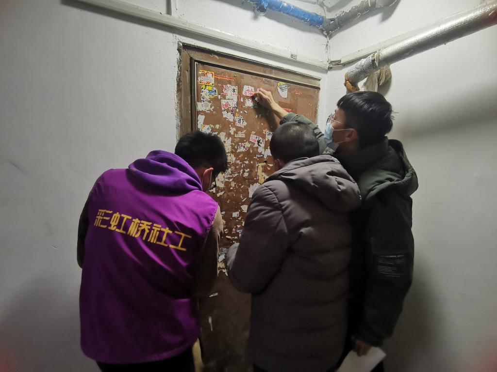 社区门口,员工志愿者身着统一服装,齐声唱起“学习雷锋好榜样,忠于革命忠于党”,一句句口号铿锵,一阵阵歌声嘹亮,带着满腔热情,同学们带好工具分头行动开展志愿服务,他们对社区监控盲区、户外墙体和楼道墙壁的非法张贴物进行了彻底清除,为美化社区公共环境献出一份力量。为了配合社区疫情防控工作,志愿者们细心地在每个单元门上张贴疫情防控排查通知,帮助社区宣传最新的防疫政策。了解到社区内有一个特殊的孤残家庭,员工们结伴走进家中看望,在亲切交谈中,社区工作人员和志愿者们详细询问着日常生活与实际需求,用行动送上一份关心和温暖。