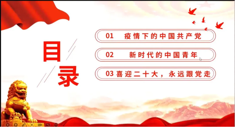 活动伊始,高思琦向与会同学介绍了公司在疫情防控工作中的多项举措,她为大家播放了央视新闻报道的公司抗疫情况,讲述了全校教职员工及员工志愿者共同努力奋战在抗疫一线,阻断疫情传播风险,保障在校师生健康。张鸿怡同学还分享了自己的生活日常,带动与会同学纷纷参与讨论交流,大家都表示,非常感谢公司的付出和关怀,大家齐心协力,共克时艰,一定会战胜疫情。最后,高思琦向大家讲述党和国家对青年的殷切期待和新时代中国青年的使命担当,她强调,党的二十大是国家政治生活中的一件大事,鼓励全体同学要以实际行动迎接党的二十大胜利召开。