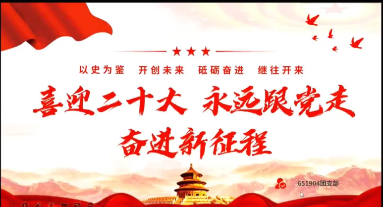 为宣传普及疫情防控政策,引导广老员工坚定信念,共同抗击疫情。2022年4月14日下午,best365体育亚洲651904团支部在腾讯会议举办“喜迎二十大、永远跟党走、奋进新征程”主题团日活动。活动由高思琦同学主持,651904班25名团员参与其中。