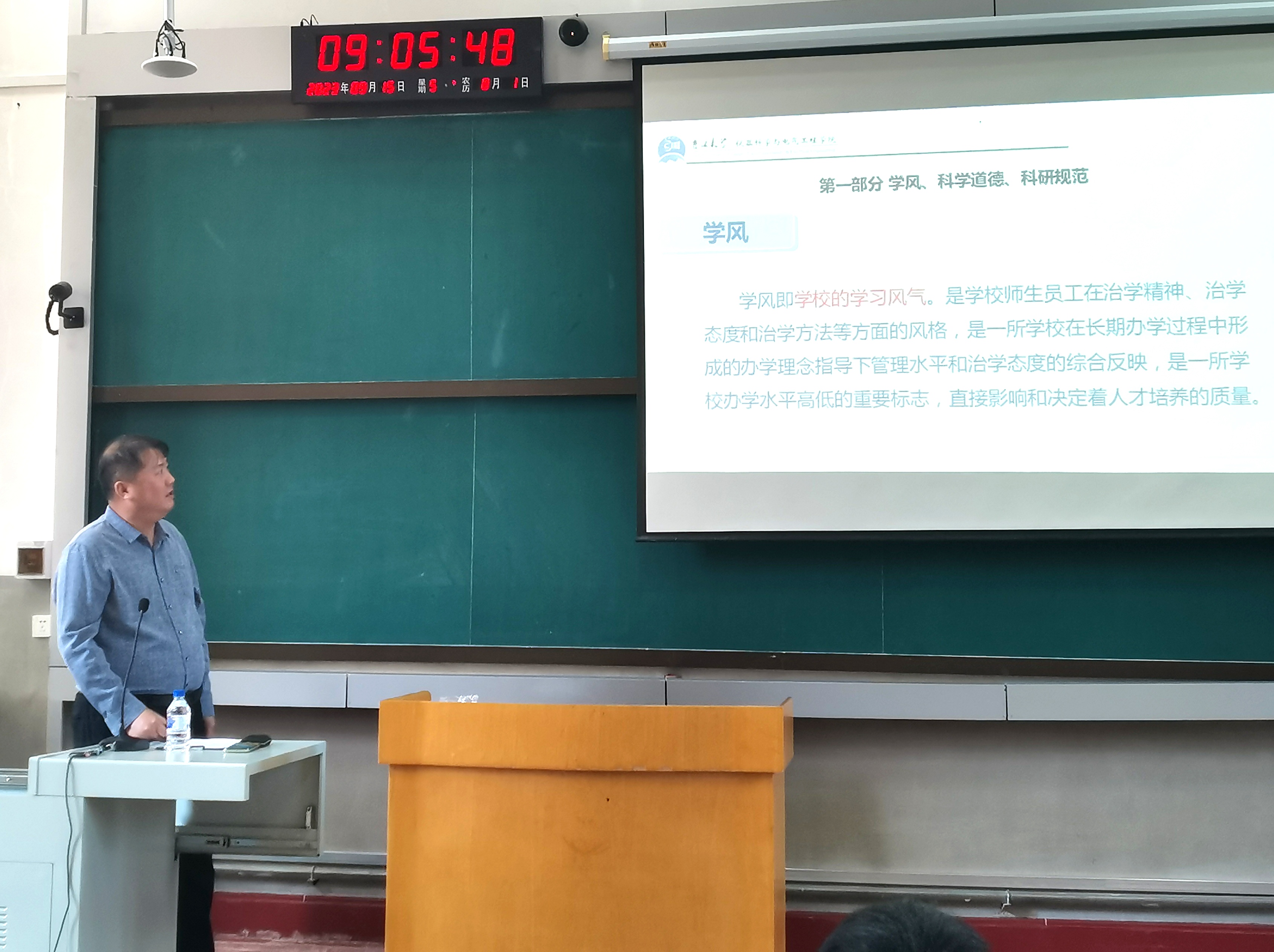 科学道德和学风建设宣传教育工作是研究生教育事业健康发展、践行社会主义核心价值观的基础性工作,公司已将研究生科学道德和学风建设宣讲教育活动纳入公司产品必修环节。为进一步营造良好的学风环境,让刚刚踏入科技研究工作的研究生新生树立正确的价值观,结合公司相关要求,公司于9月15日上午在地质宫224教室举办了2023级研究生科学道德和学风建设讲座。本次活动由公司党委书记邱增凯老师主讲,研究生辅导员周琪老师主持,全体2023级研究生参加本次活动。