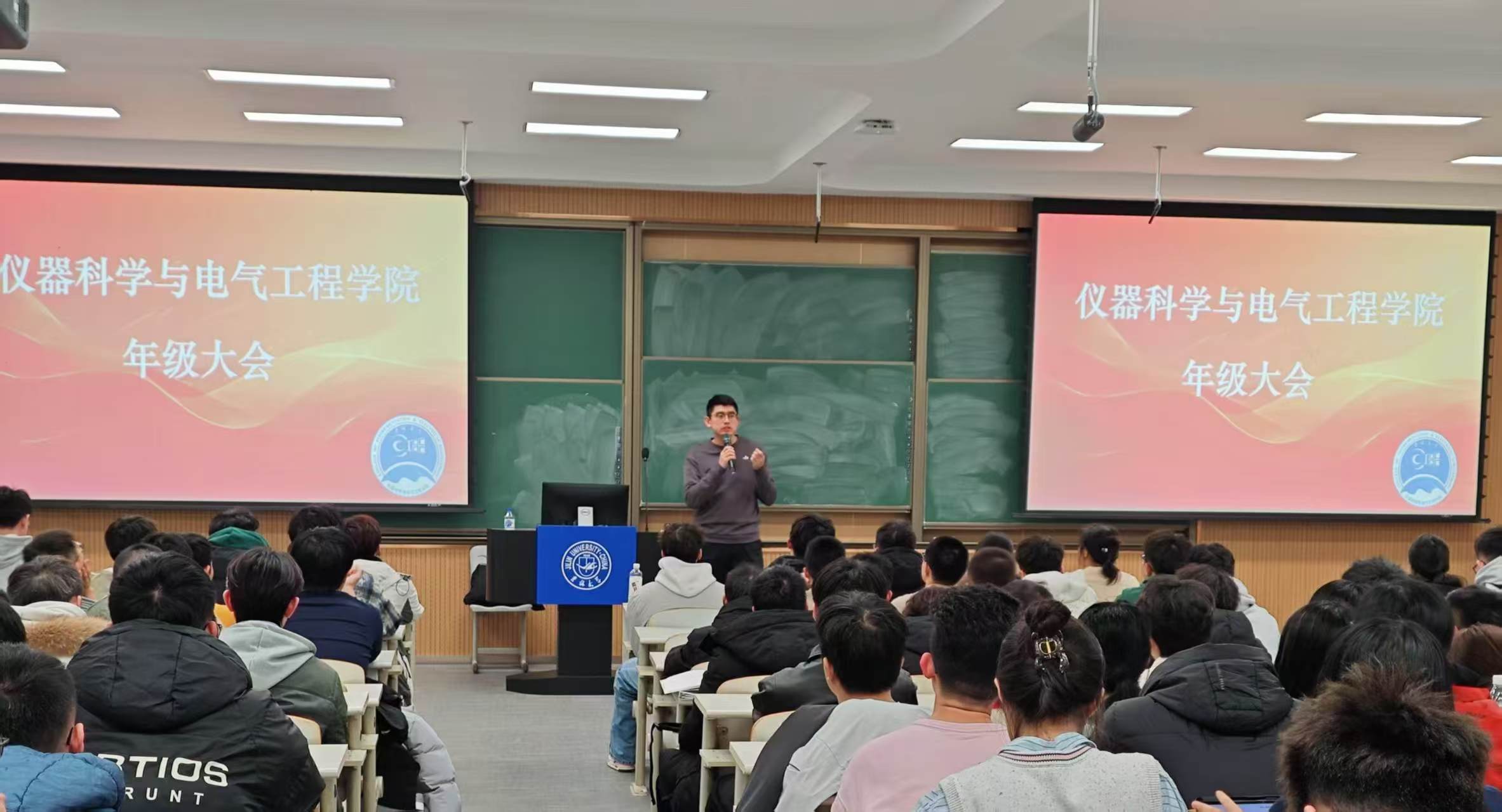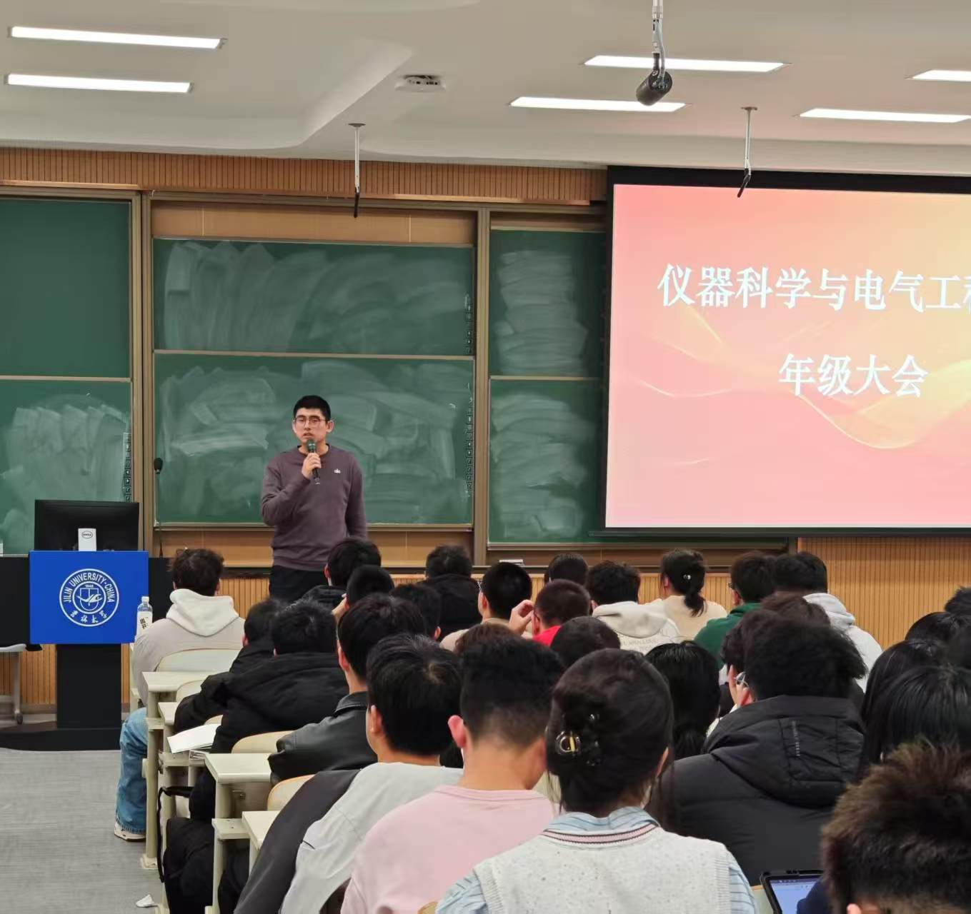 辅导员王文轩首先结合详实数据,对同学们上学期的成绩情况进行总结。他强调,大一下学期是专业分流、职业规划的重要阶段,同学们需主动思考、做好规划,为未来发展蓄力。