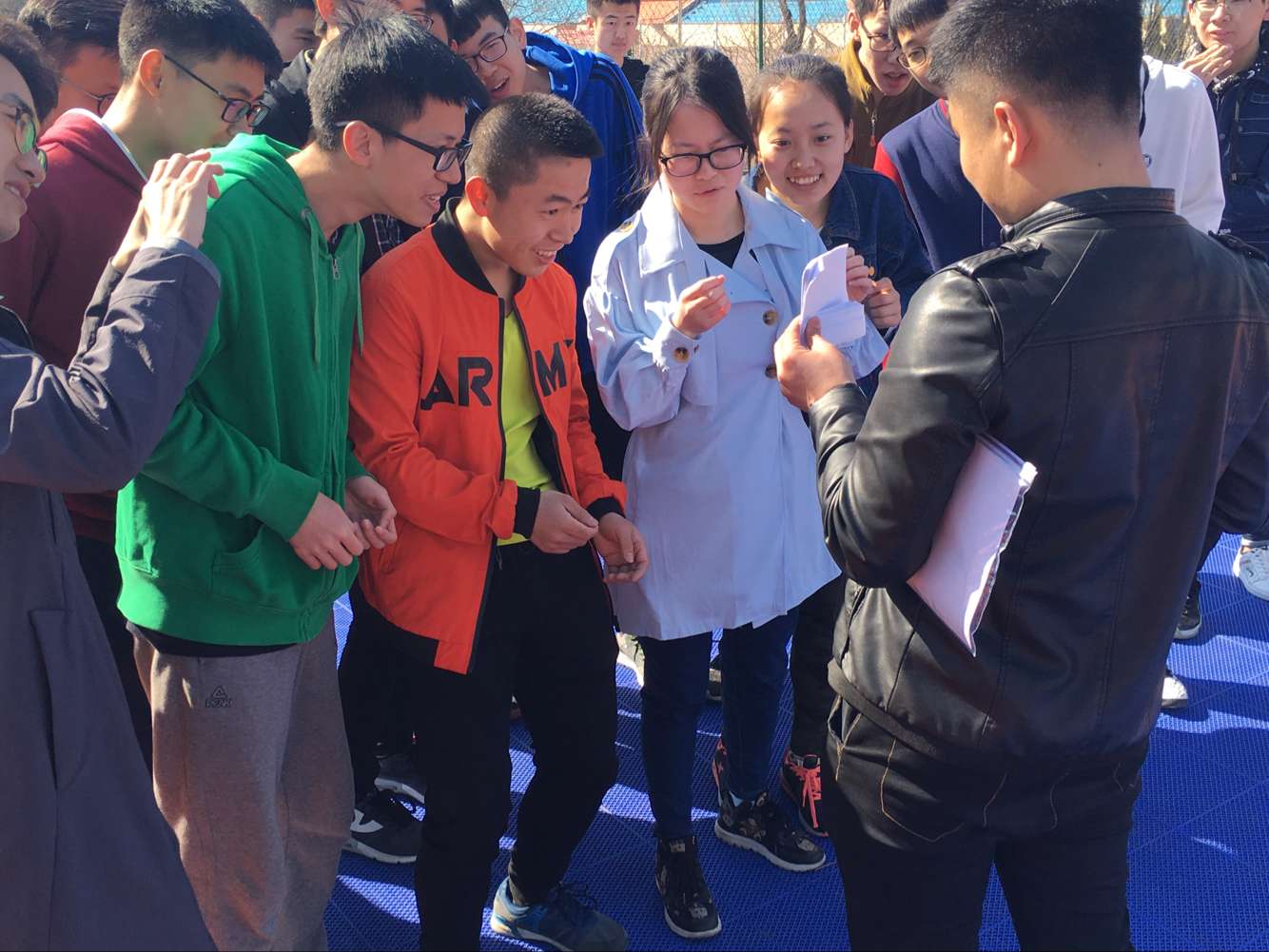 本次活动充满了竞技性和趣味性,宣传消息一出,同学们便兴趣盎然,都积极踊跃报名。活动当天,工作人员早早到达现场进行准备工作,参加活动的同学纷纷自我介绍相互认识,待记分员向同学们介绍清活动内容及规则后,游戏正式开始。本次活动主要设计为连环闯关小游戏,路人合照和撕名牌三部分,每位同学都积极参与、团结协作、拼搏进取,充分发扬竞技精神,并亲切地与场外人员互动,将快乐传递给每一个人。活动最后,总记分员公布分数排名,发放奖励,喜悦的笑容洋溢在每个人的脸上。
