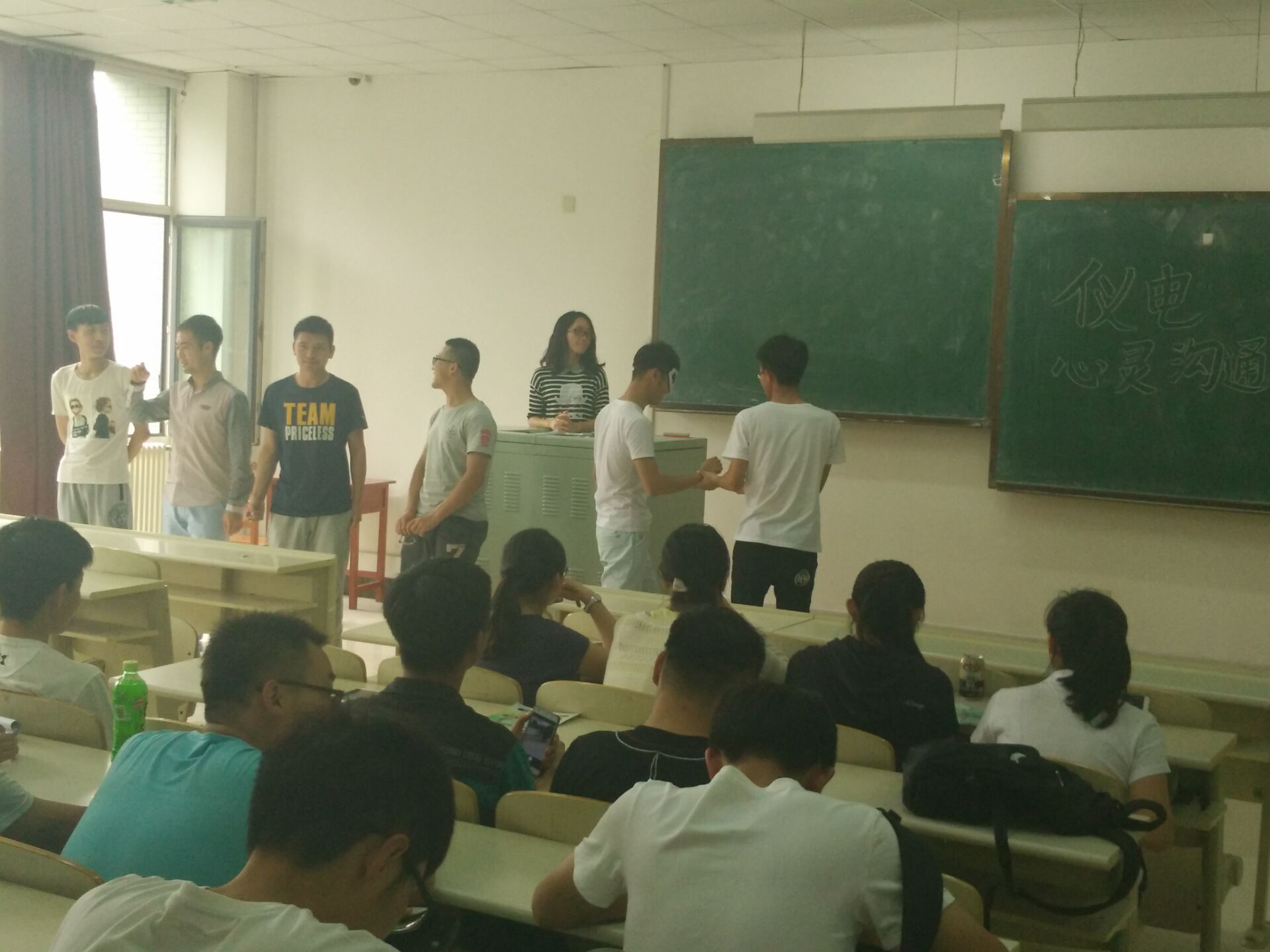 次活动在心理部部长朱凯的领导和各成员的配合组织下有条不紊进行。全活动共两个项目,首先,通过一个画图的小游戏调动了广大同学的积极性,使同学们在身心愉悦中放松自身,不再拘束,为接下来的活动做准备。游戏过后,主持人便让同学们自行讨论自己的老员工活,与大家分享自己的老员工活感受。并且选取一些同学说出自己在大学中遇到但没有解决的问题,然后大家共同探讨研究。活动最后,朱凯部长做以总结,完美收关