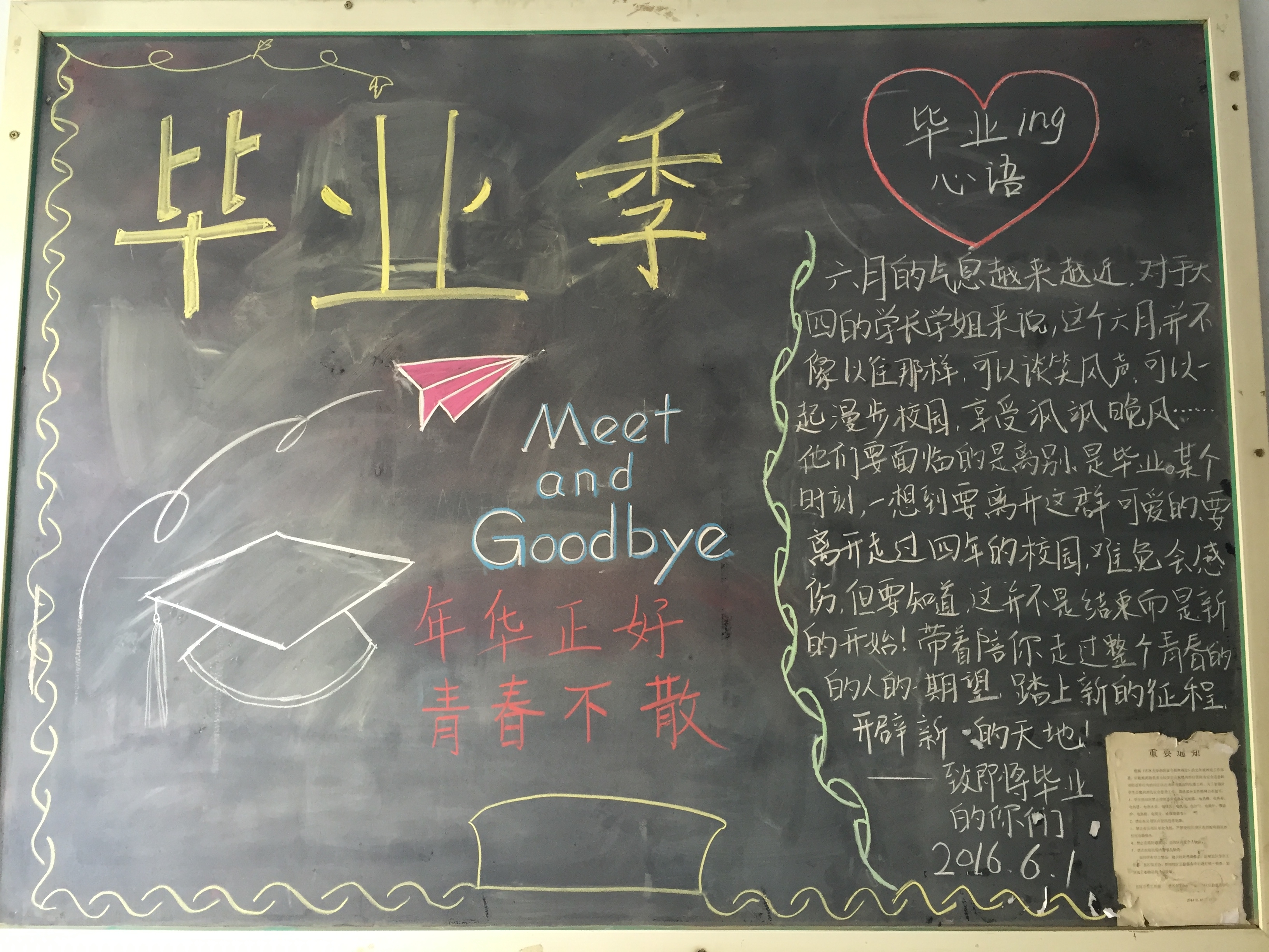 为迎接毕业季的来临,并为同学们创造优雅舒适的公寓环境,best365体育亚洲官网best365体育亚洲团委于2016年 6月1日15:00在朝阳校区一、二、五员工公寓开展了绘制“毕业季”主题黑板报活动,公司在校生代表参与了本次活动。