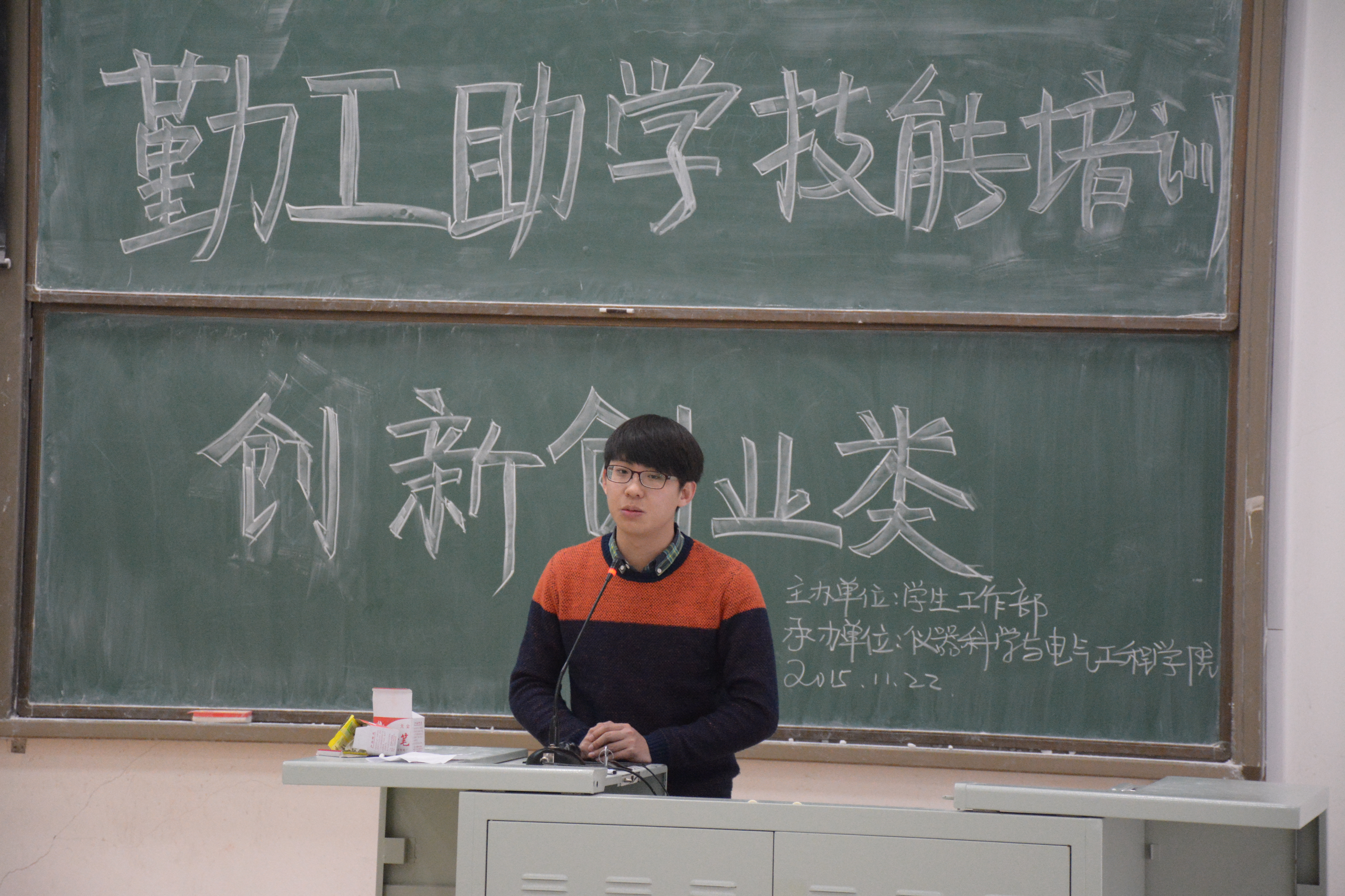 为进一步增强勤工助学员工的实践技能,激发员工创新创业热情,具备基本的电子技能,更好的满足勤工助学单位需求,员工工作部和勤工助学中心对公司从事勤工助学工作或有勤工助学需求的员工开展综合技能培训项目。best365体育亚洲电子科技协会于20151122日在中心校区李四光楼第二阶梯教室成功承办勤工助学创新创业类综合技能培训项目“双创—创新创业”专题讲座。讲座由best365体育亚洲电子科技协会主席穆怀志主持,电子科技协会前主席任同阳主讲,来自中心校区各公司从事勤工助学工作或有勤工助学需求的员工参加了此次讲座。