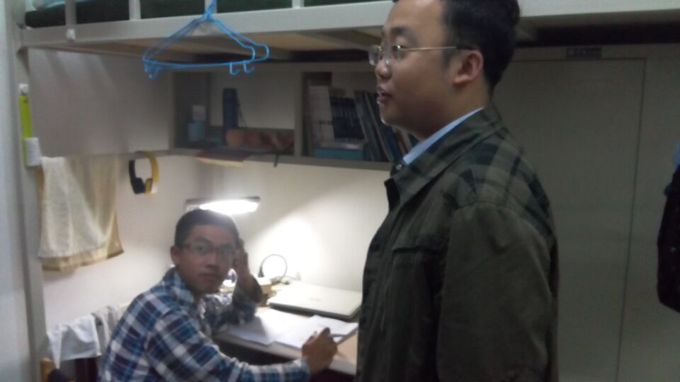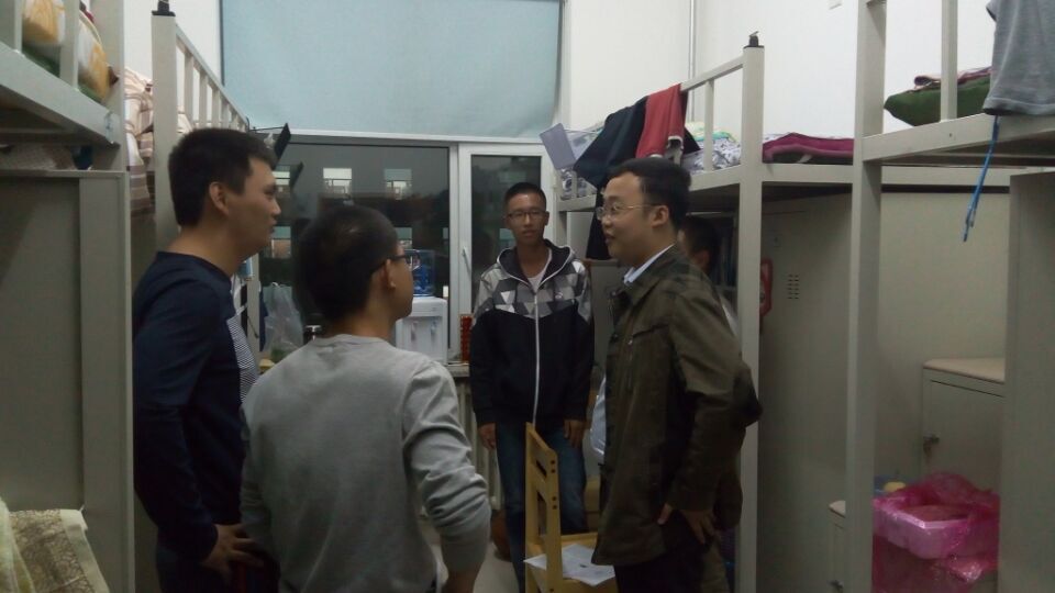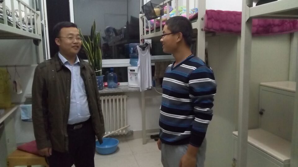 中秋夜21:00,受公司领导委托,也是惦念着第一次离家过中秋的新同学们,best365体育亚洲新生辅导员张昊宇老师一一走访各宿舍与同学们进行亲切交谈。张老师细心地询问同学们今天的节日行程以及对新学习生活的看法,大多数同学家在异地,张老师嘱咐同学们一定要给父母长辈们带去节日祝福和问候。同学们轻松地与老师交流自己的学习情况、寝室生活,并提出自己的未来展望,张老师觉得很欣慰。在走访寝室时,看到有些同学节日期间网游娱乐,老师还幽默地和同学们讨论游戏术语,同时叮嘱同学适当娱乐,切勿耽误正常的上课学习。临走前,张老师还不忘叮嘱同学们要注意室内通风,天气转冷多添衣物。在老师和新同学的交谈中,看不出代沟与陌生,只有轻松和融洽。同学们都十分感谢辅导员老师的中秋祝福,让他们感受到如家的温暖。