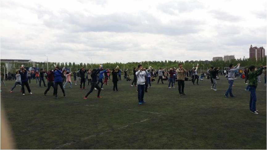 为使大家能更好地掌握大舞,朝阳校区五个公司的员工每天清早就奔赴到训练场地,进行热火朝天的训练,每次训练持续一个多小时,同学们训练的极其认真,在朝阳下挥洒自己的汗水。公司领导非常重视这次活动,每天都尽早来到体育场观看同学们的训练,并对大舞团体训练进行指导,大舞团体项目展示了地学部员工的风采,相信其一定会是运动会上最靓丽的风景线。