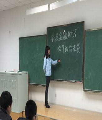 首先,主持人对金融知识,诚信还贷做了详细的介绍,并举例说明诚信的重要性,为同学们讲了孔子的抉择,卢梭的忏悔等有关诚信的故事,引发了同学们的极大兴趣。随后,大家观看了诚信还贷的视频短片,了解了助学贷款的贷还相关知识以及诚信还贷对于个人征信系统资料建设的重要性。之后,同学们就如何实现诚信还贷进行了热烈的讨论,大家踊跃阐述自己对于诚信的认识。最后,大家以诚信宣言、诚信签名环节圆满结束了此次主题班会。